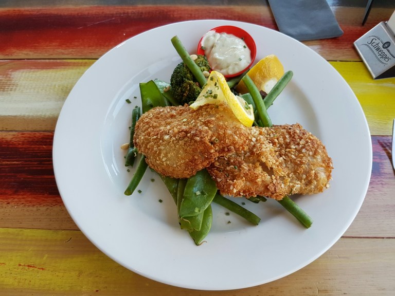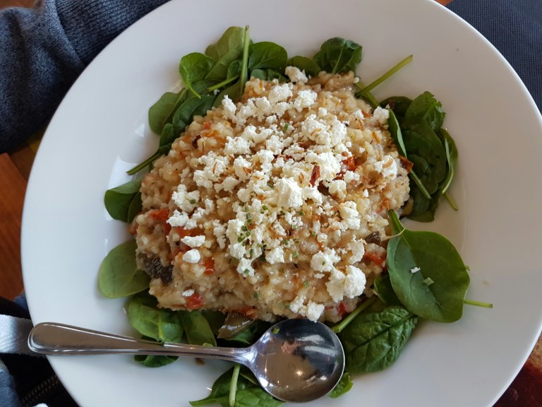 Quinoa crumbed fish.(www.saltshakerrestaurant.com.au). I guess the chef knows the word risotto from the radio …