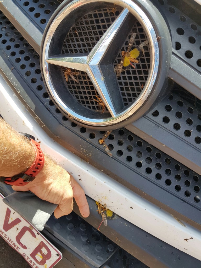 Slept at the Barradale 24 h Rest stop at Yannarie River. Incredible hot, no power, no air condition. I hate the Road Train driver who stopped there and had 4 big air condition engines for his 50 m road train running all the night. I would had let the air out if his tires, if there would not have been so much tires (16 axis, most of them had 4 tires on it).