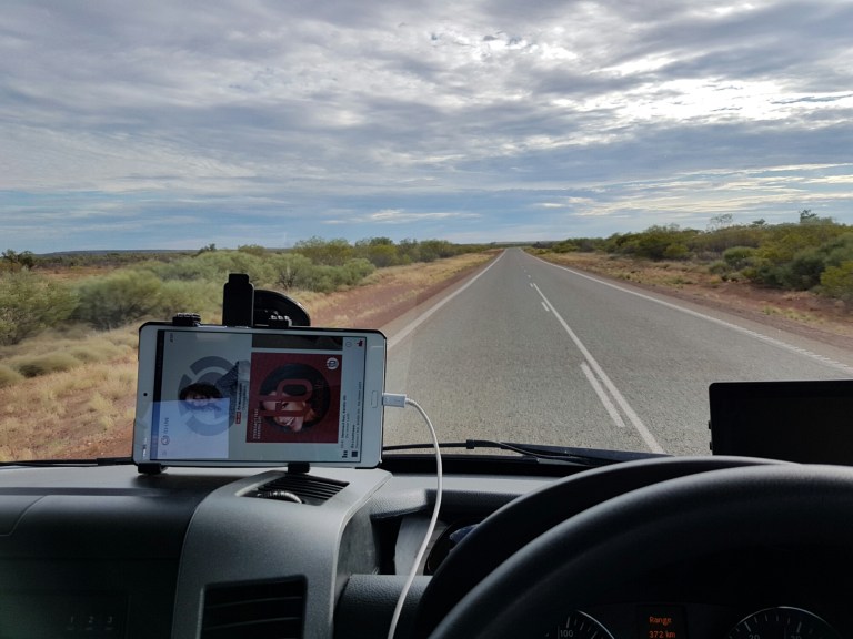 February, 2nd. Barradale Rest Area, 2.966 km to Darwin, 6.719 km to Melbourne, 4490 km driven so far.