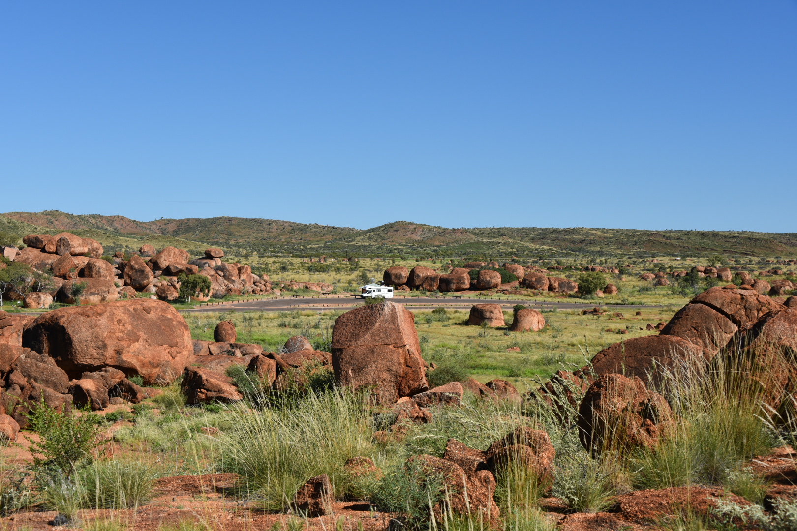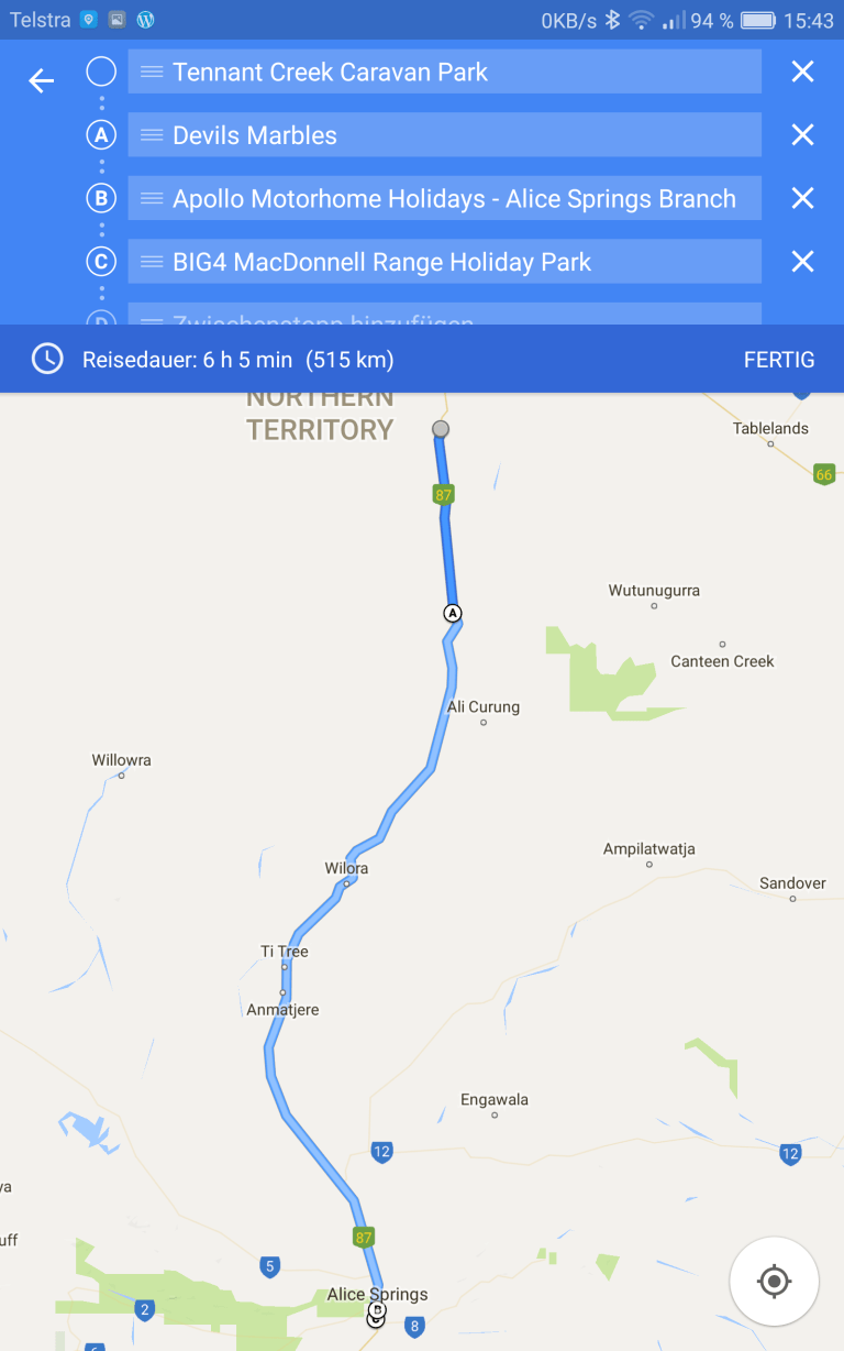 February, the 10th, it is a sunny hot day in Tennant Creek, clothes are washed (drying time 12 min in the sun) it is 2.760 km to go to melbourne, todays objective is Alice Springs (approx 500 km desert drive on stuart highway).