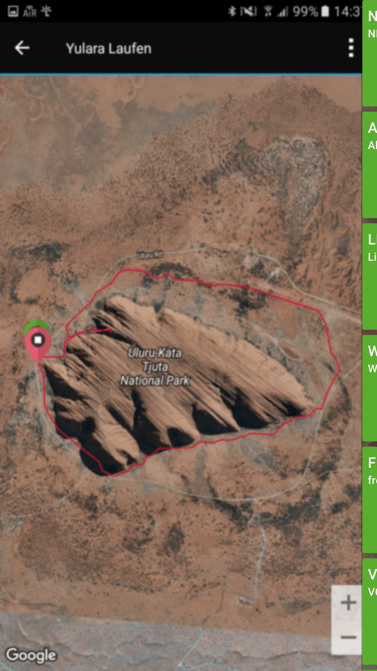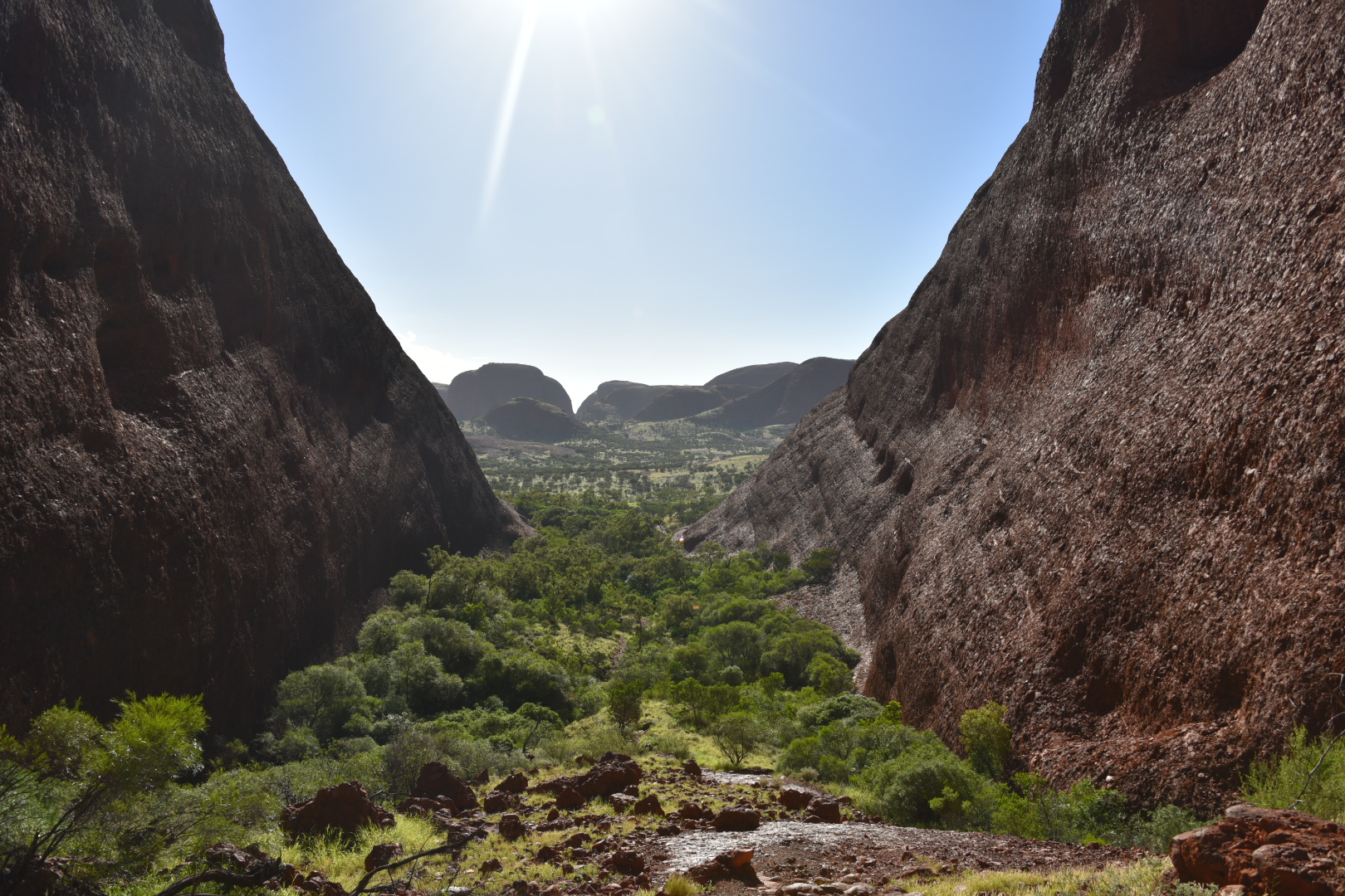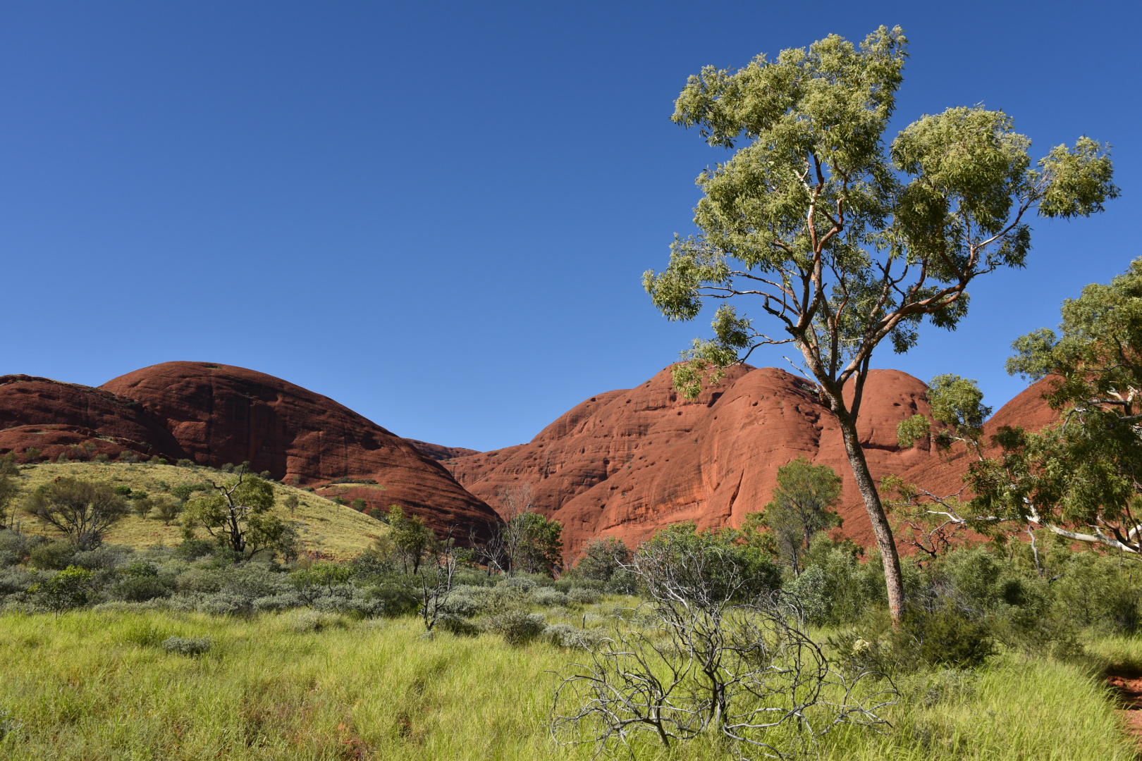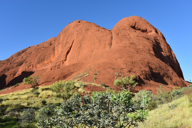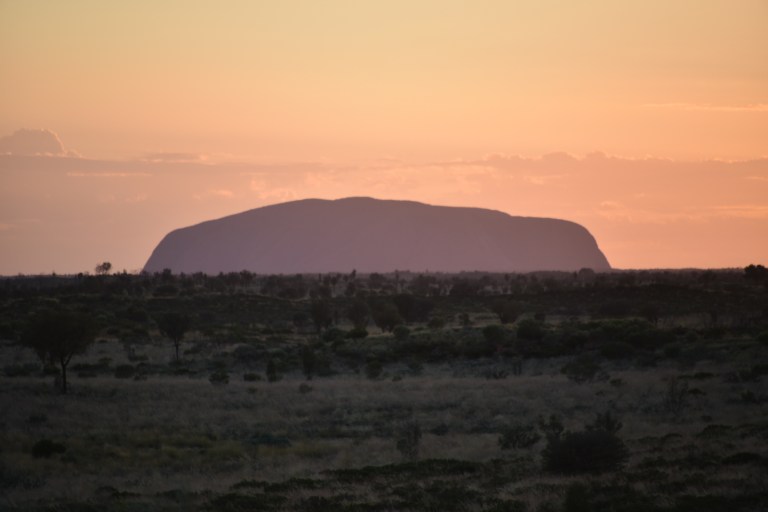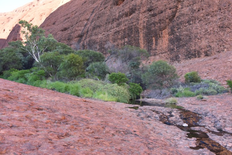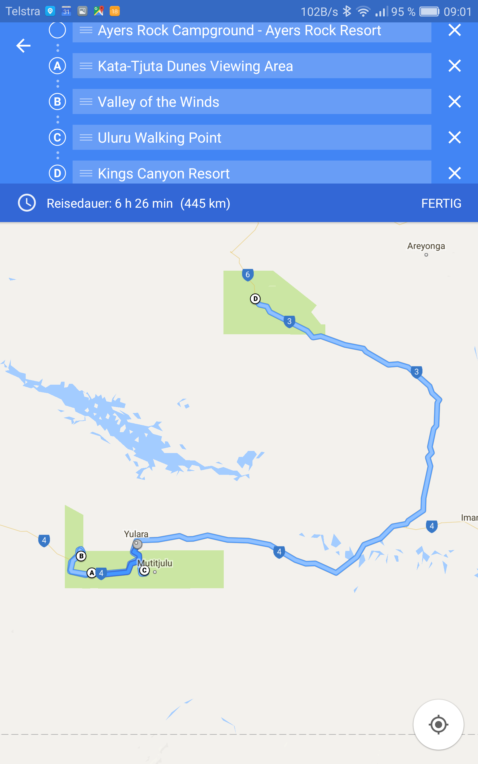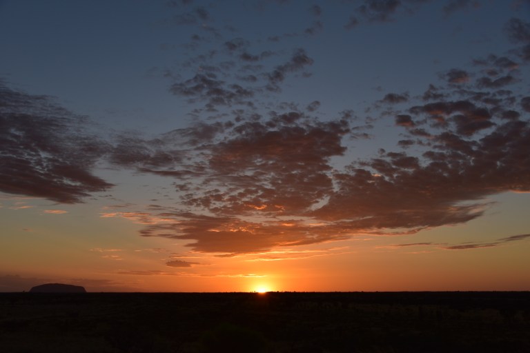 February 13th, Ayers Rock Campground. According to the recommendation of the receptionist we go for sunrise at the olgas dune viewing are. We are not alone. You have to be at the park gate at 5:00 am. We are second. Behind us the busses come.