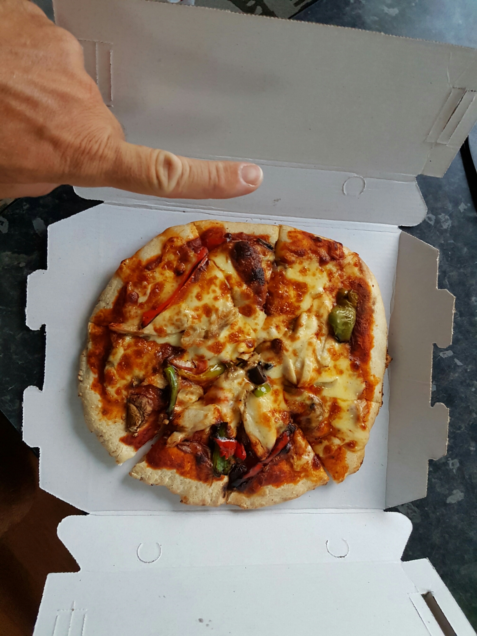 There i get for 22 aud the pizza “supreme” of my life. Let us call it chicken bread, some sort if.