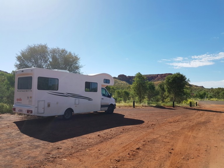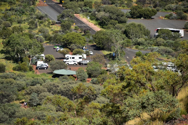 February 14th, halftime, 12.300 km driven, we are at Kings Canyon Resort, it is 2326 km to melbourne at 14 days to go.