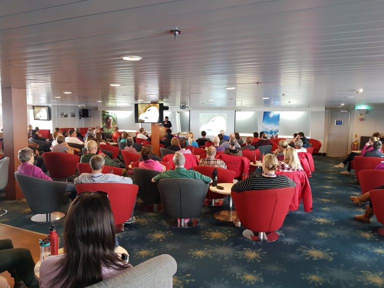 Afterwards we have lectures about Amundsen and Scotts race to the Southpole, Animals of Antarctica in the Discovery lounge. There is free coffee 24/7 here, too. We skipped photography lessons to sit outside at calm sea, no wind in the sun.