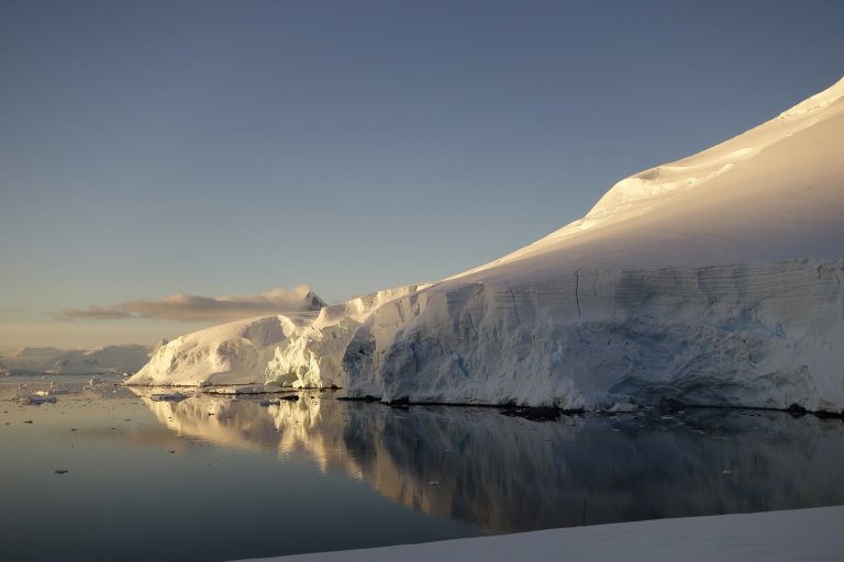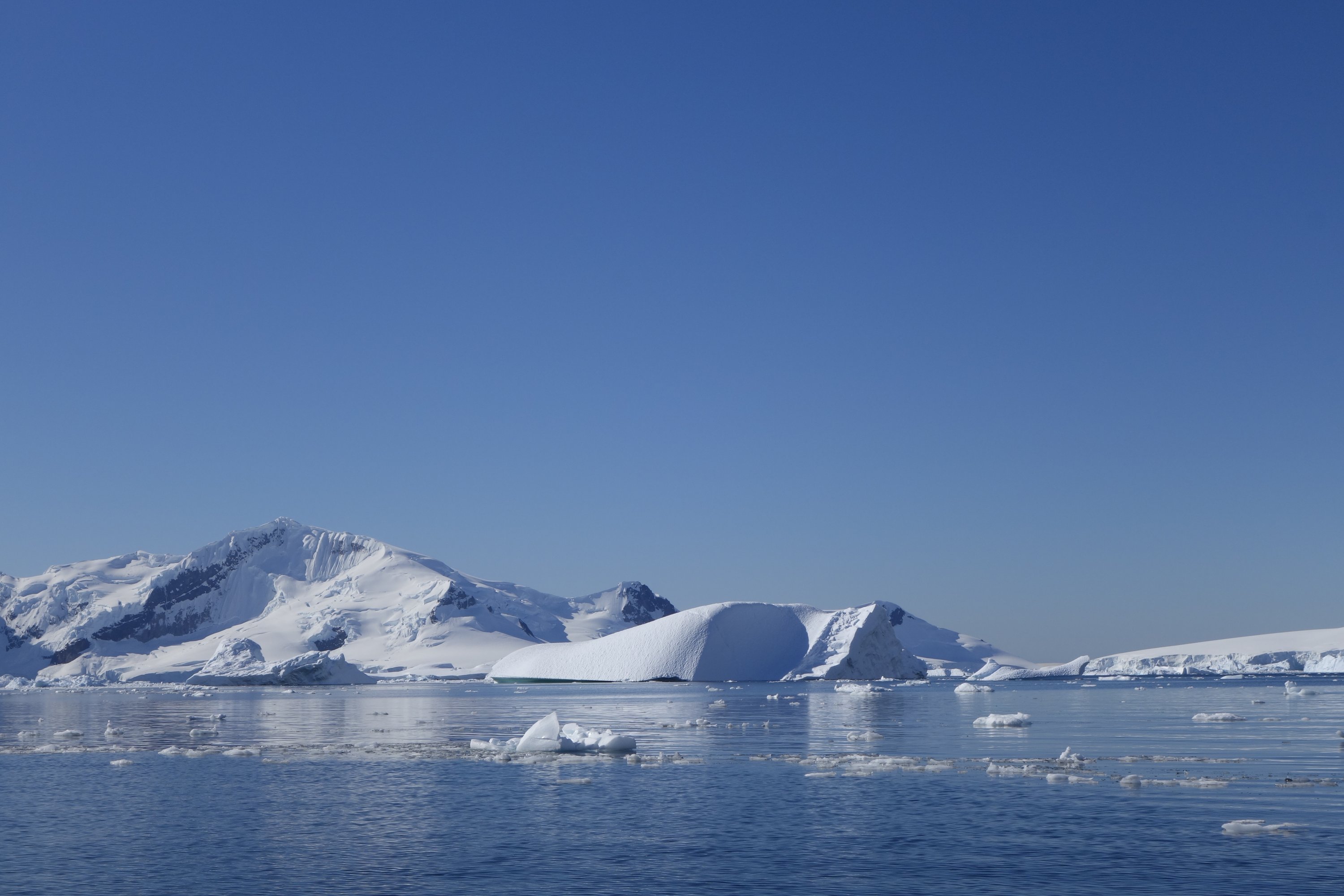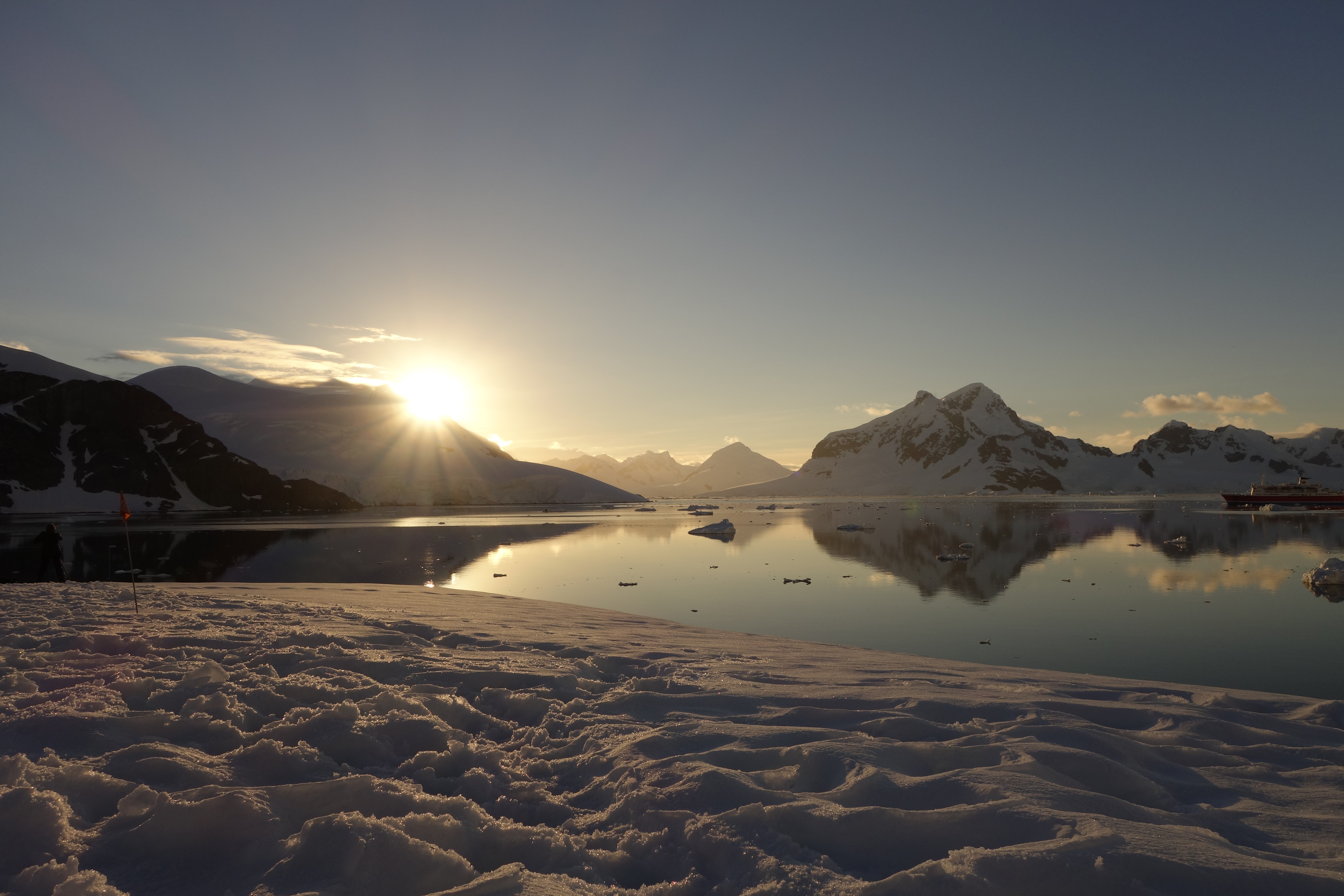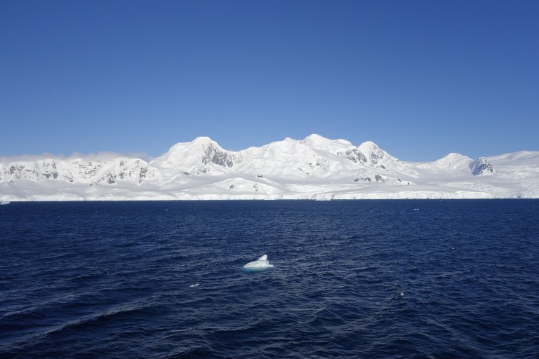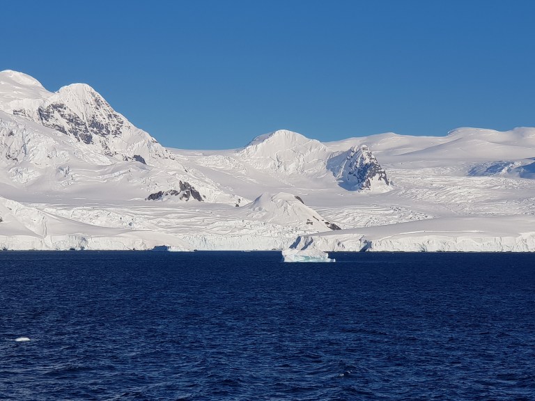 Blue sky and sunshine since 02:53 am. Expected sunset at 11:37 pm. There is not much darkness these days in Antarctica. We cruised to Cuverville island, Antarctica main land.