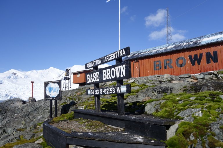 We decide for the Brown base and Zodiac. So we land on the argentinian antarctic brown station. They have no stamps for the passport. Big disappointment on the vessel. We walk up the next hill (Brown base mountain).