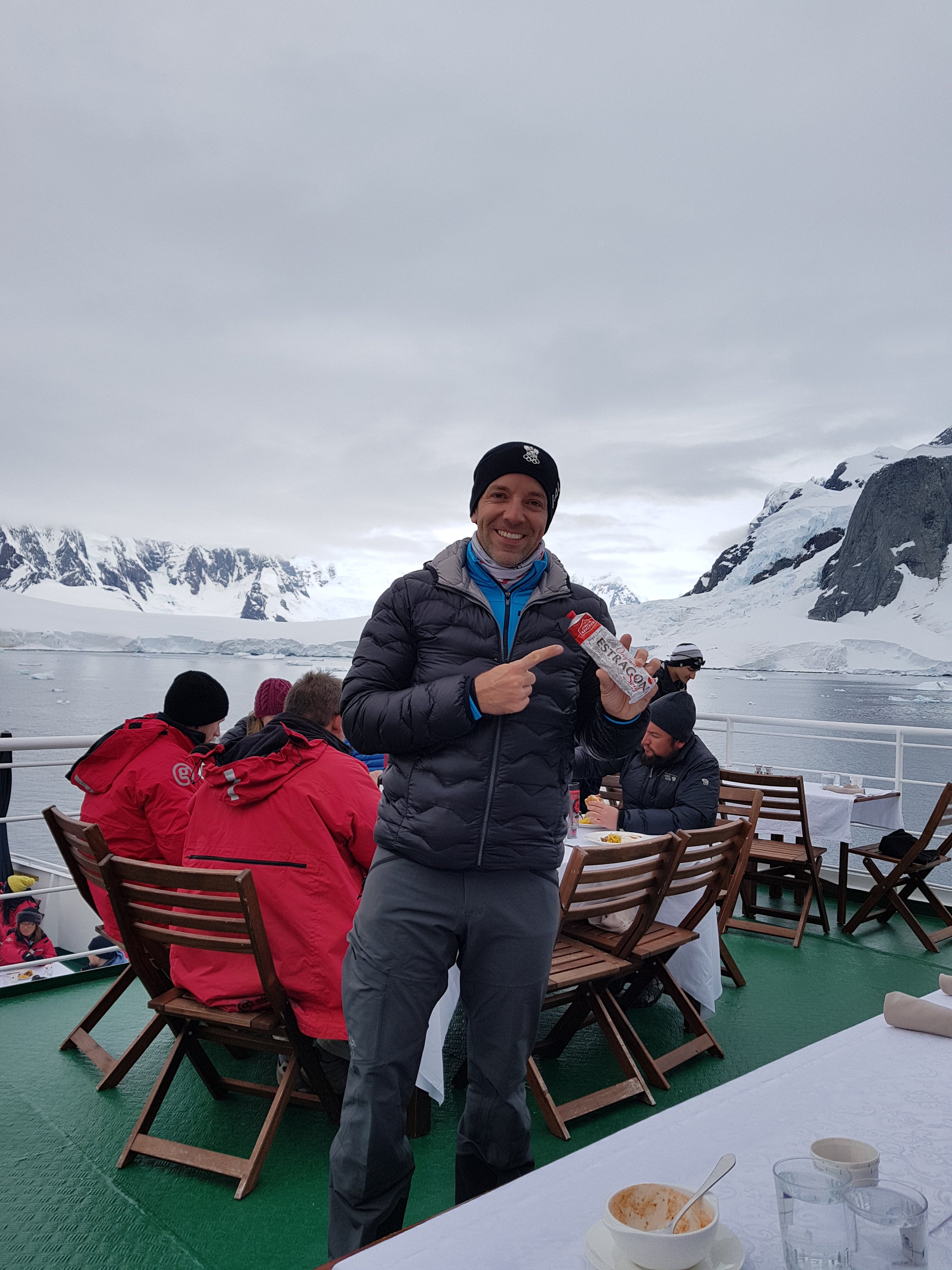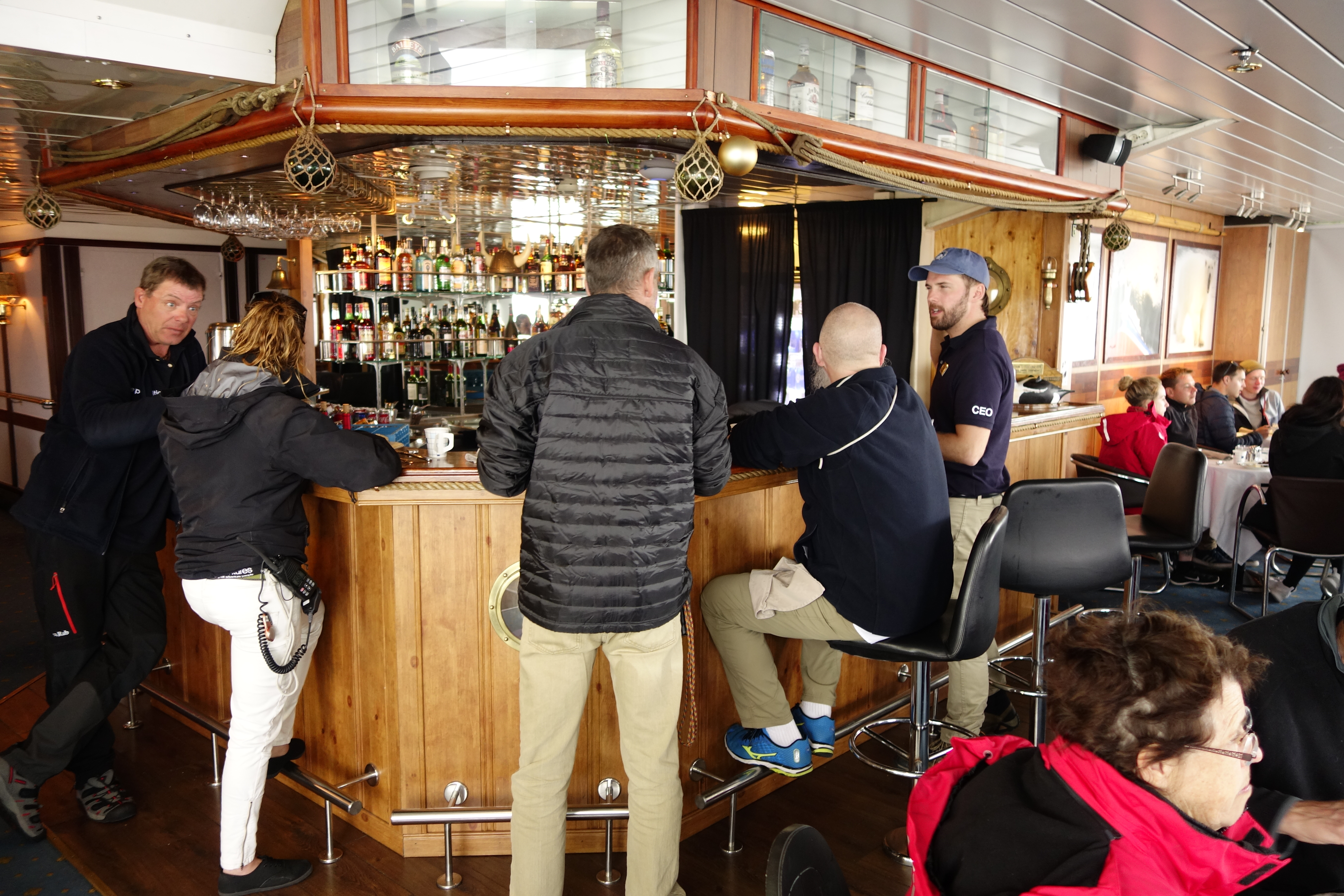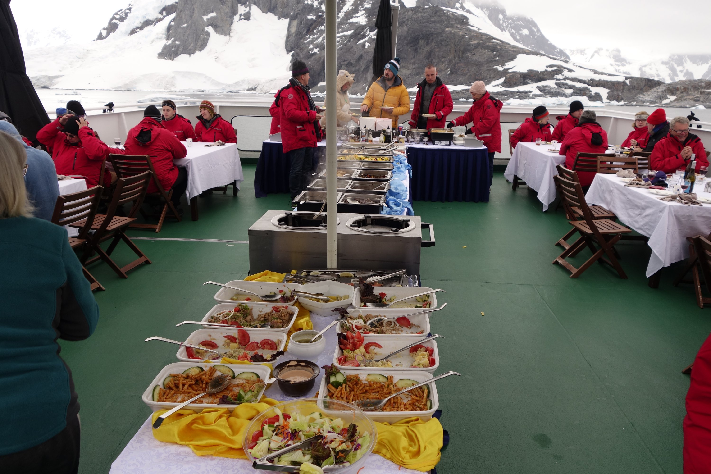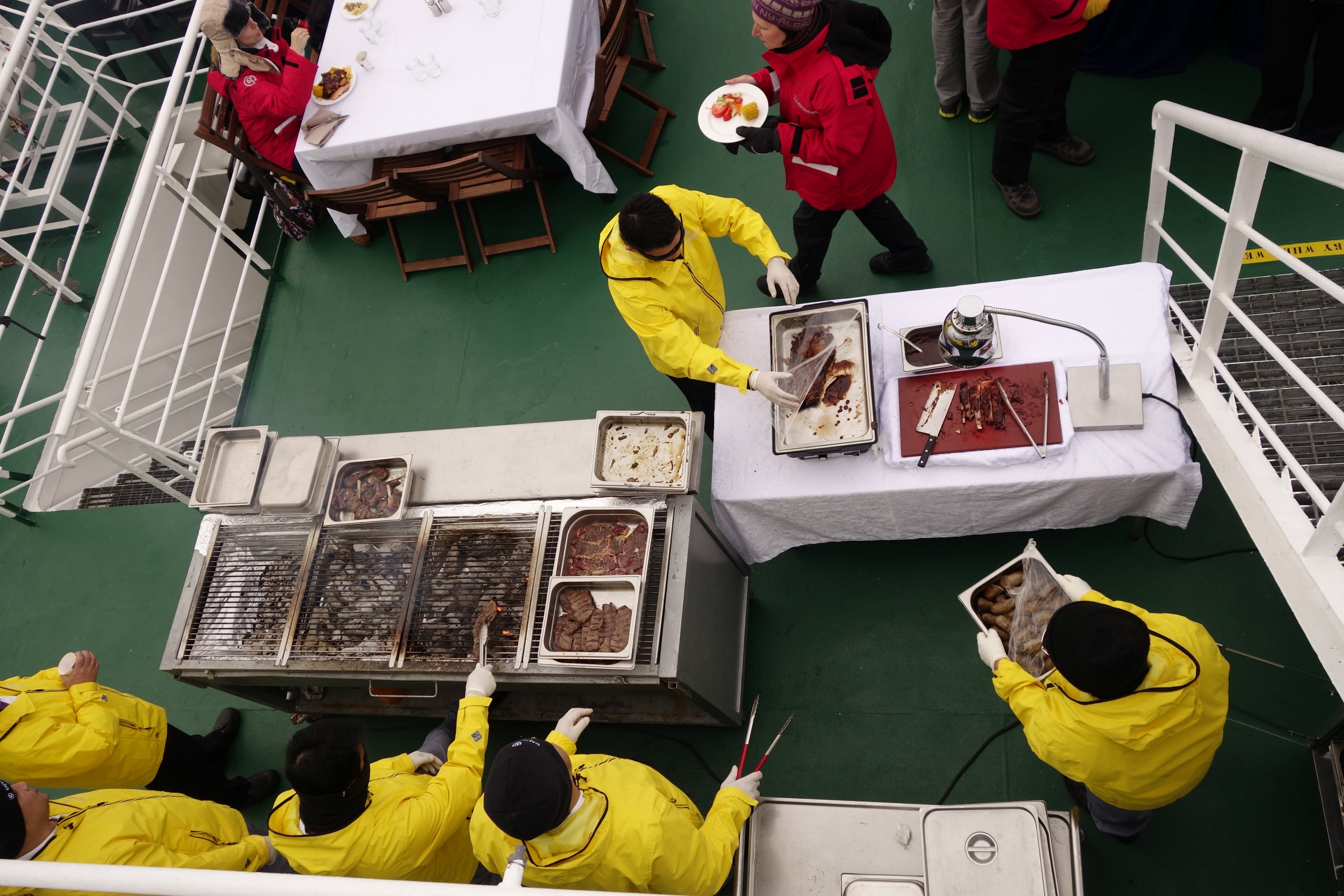 On the bow deck crew builds up a station with hot chocolate (of course with optional rum):
