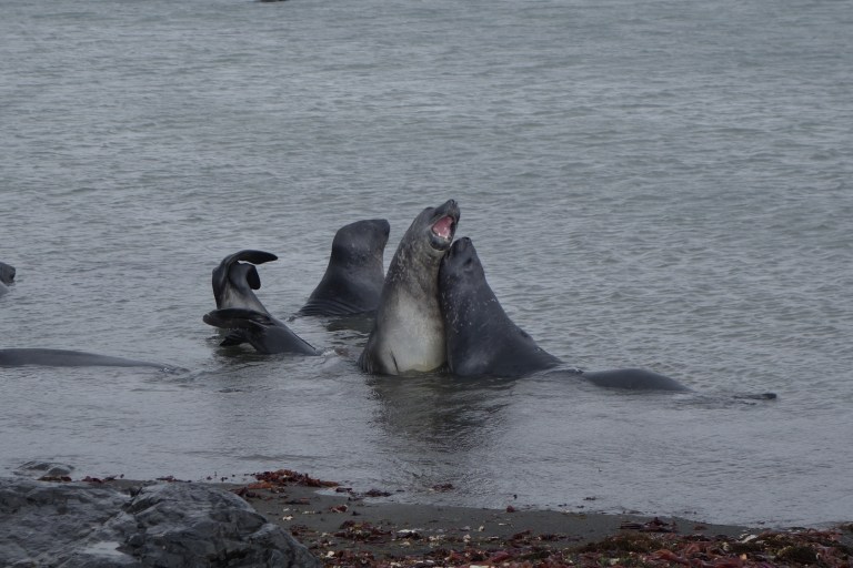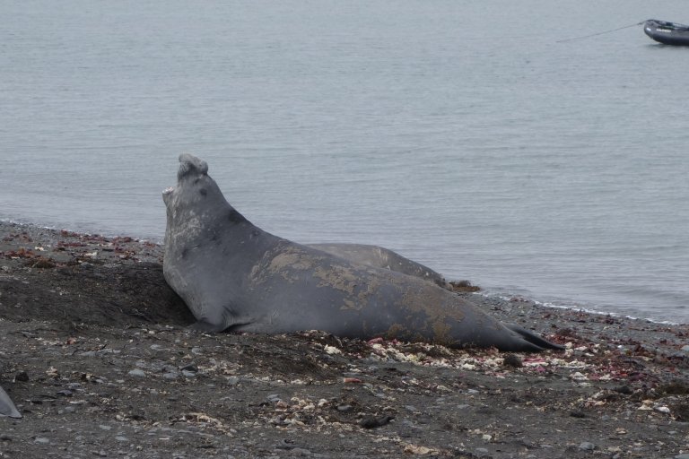 In the afternoon we go for Elephant Point, named after the massive amount of elephant seals there. Once you step into the zodiac you are wet from the waves.