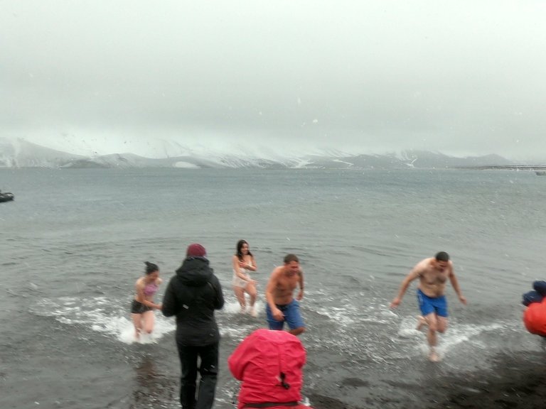 Finally we got real antarctic weather. Cold, wet, windy, waves. We start after breakfast on deception island on the south shetlands. A former whalerstation, which was destroyed and abandoned after a volcanic erruption. We do a small hike on the hill but the main attraction is the polar plunge, swim in Antarctic sea.