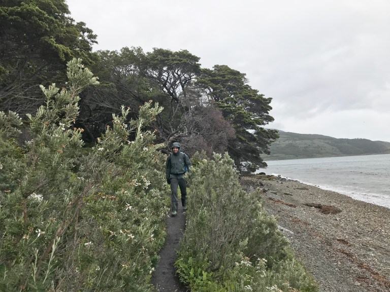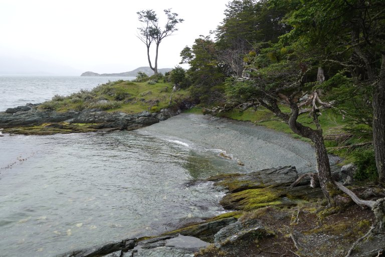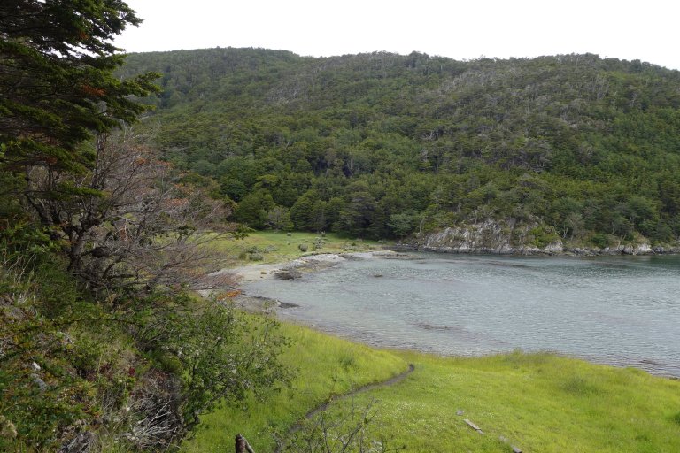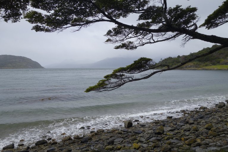 With the bus we drive to Ensenada Zaratiegui (at Correo del fin del Mundo) get off the bus and walk the costera trail to Alakush Visitor center (super beautiful). The path is not to miss, it is just to walk along the coast. At Alakush Visitor center we get a break with coffee and a churaza kish. Then we walk the paseo de la isla, catch a bus there back to Alakush.