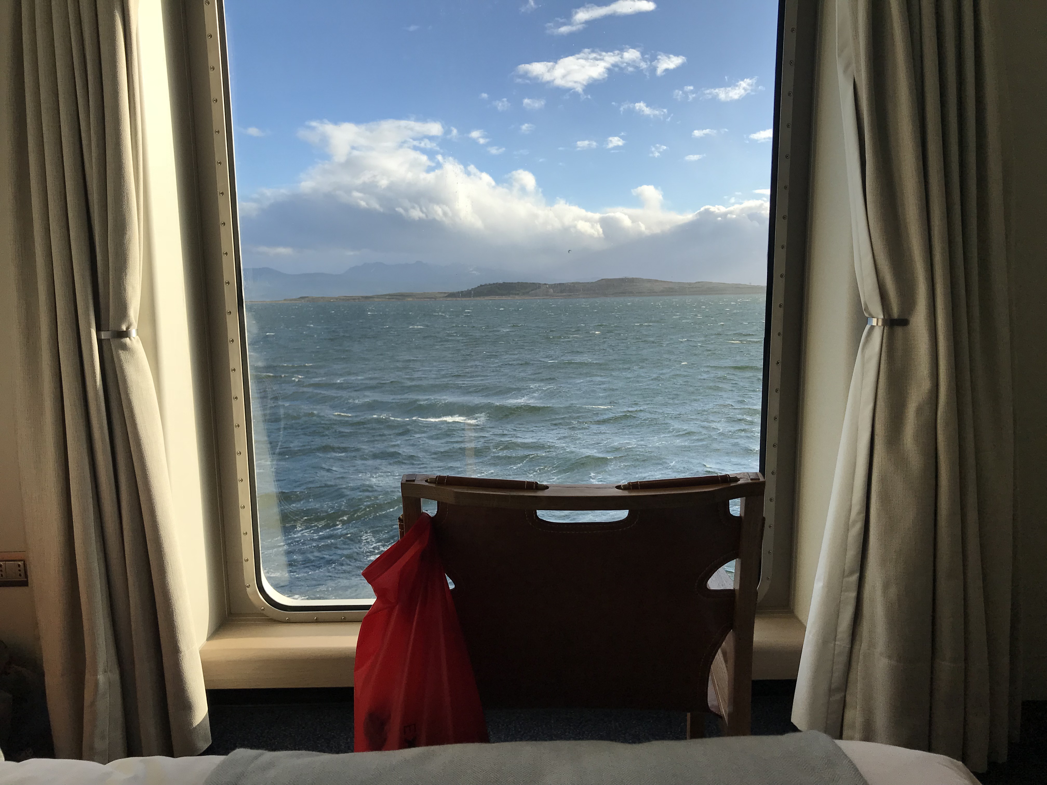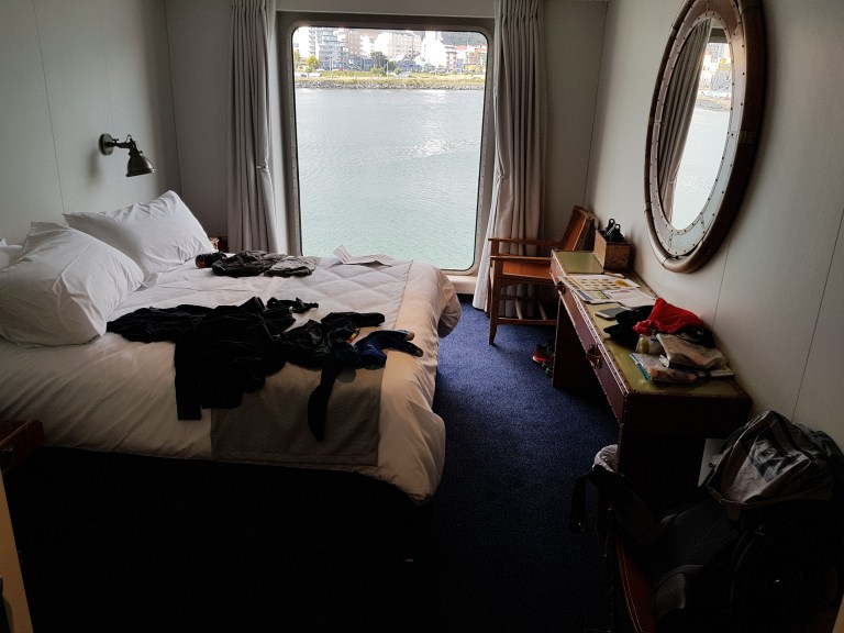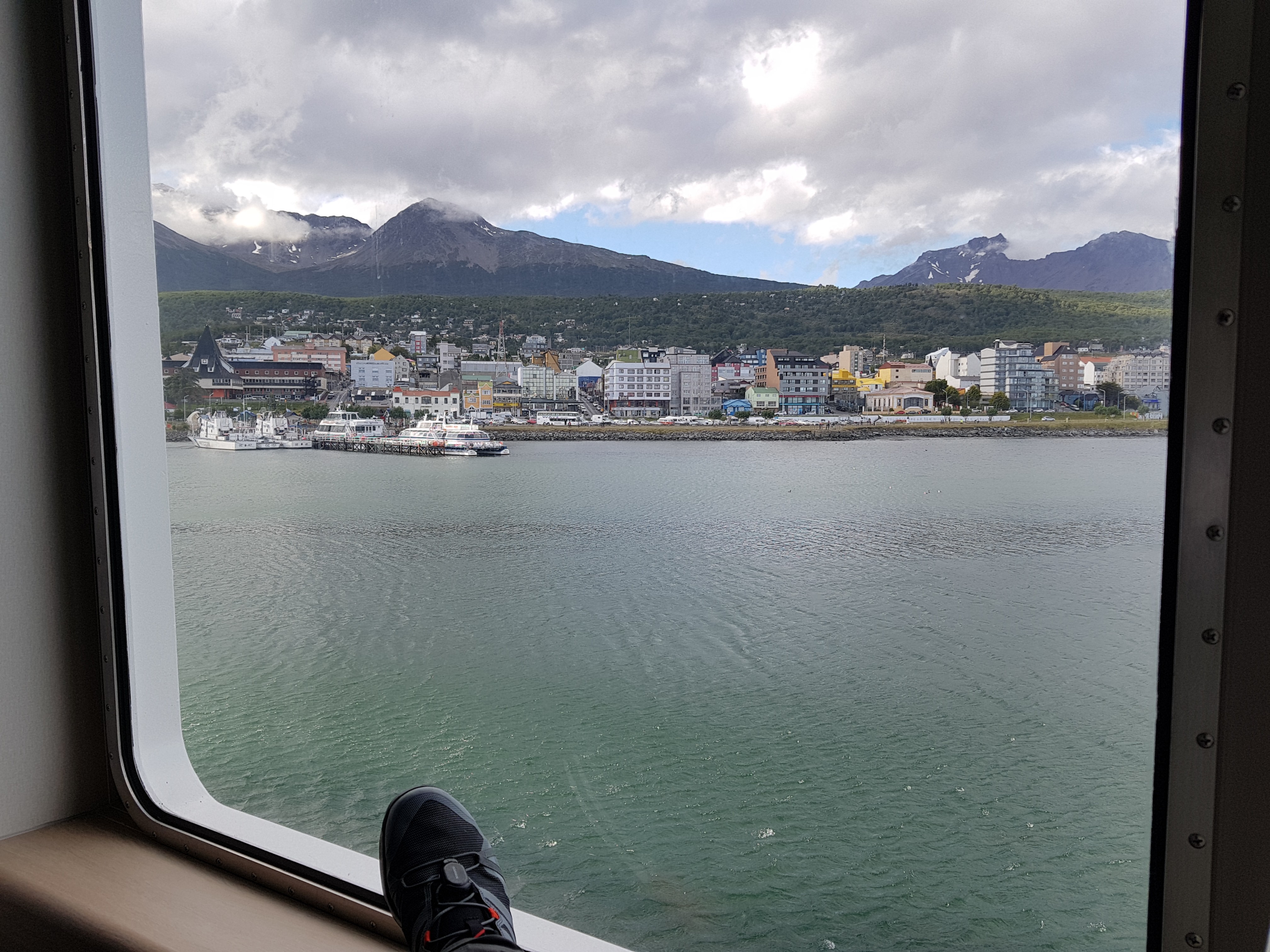 At Alakush we have to wait for ‘our’ bus company (it seems they don’t take you back if you got the ticket from another company) and then go back to ushuaia harbour. We arrive short before 18:00, where we go aboard the Ventus Australis, our home for the next week and get a funky safety briefing.