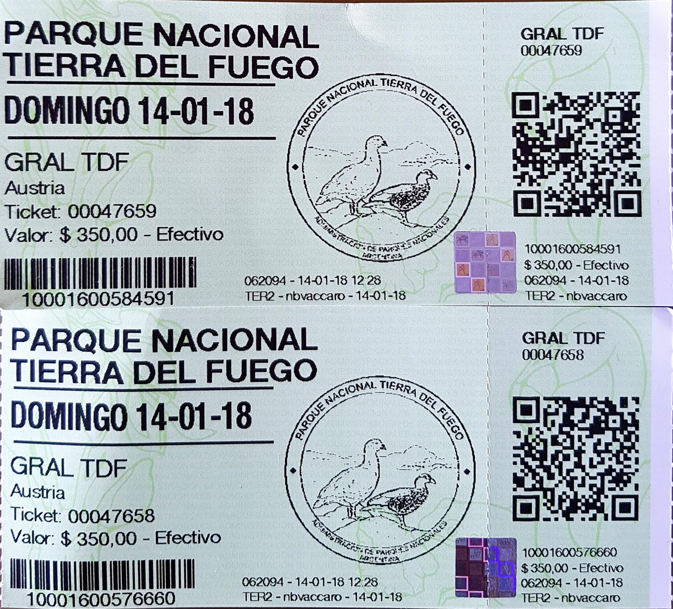 We catch the bus (2 ways 2 pax 1000 ARS) after some discussions because there are 3 different buses, but they say they’ll take you back anyway, stop at the national park entrance to pay the day ticket (700 ARS for both of us).