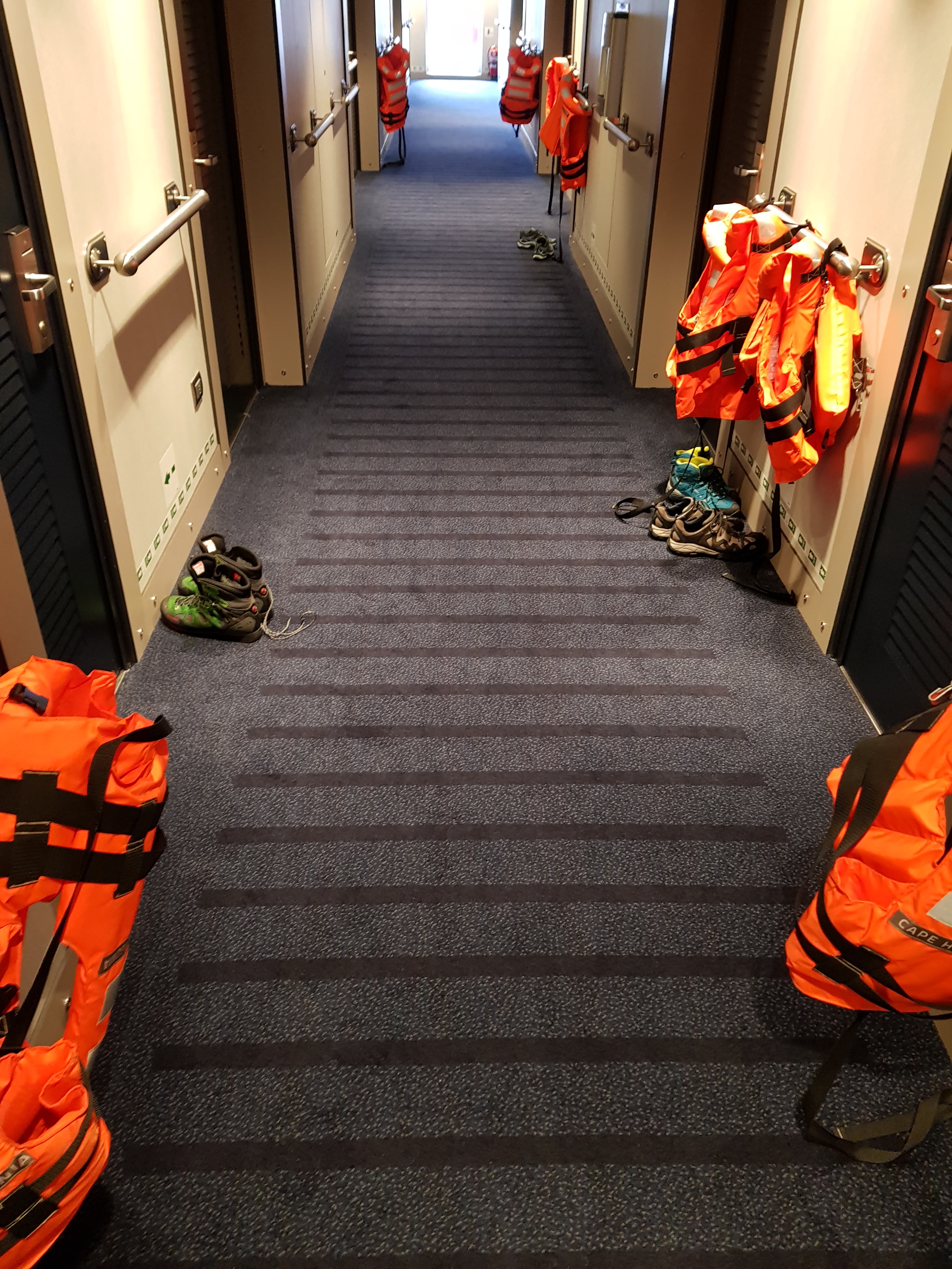 Somehow the ventilation has troubles on the vessel. Nothing is drying in the cabins, so the passengers start to put everything out.