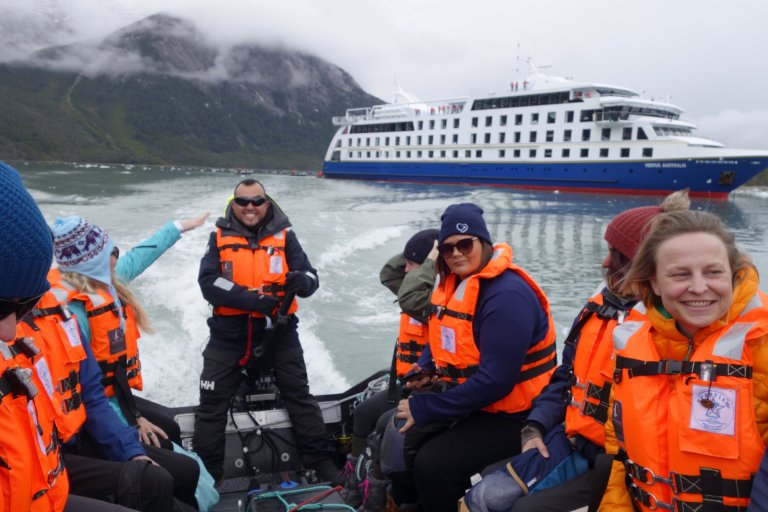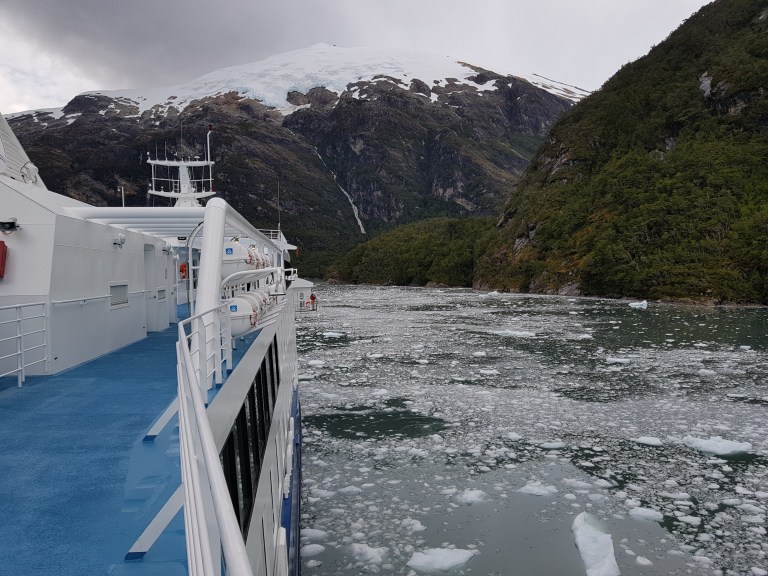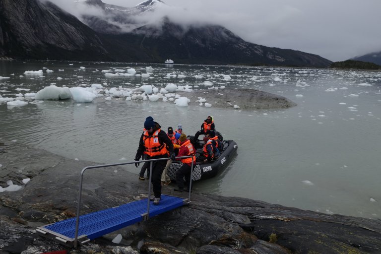 While we have breakfast, ship navigates into Pia Fjord to the Pia Glacier. The location of our next excursion. We choose to go with the very challenging option. They say it will be muddy.