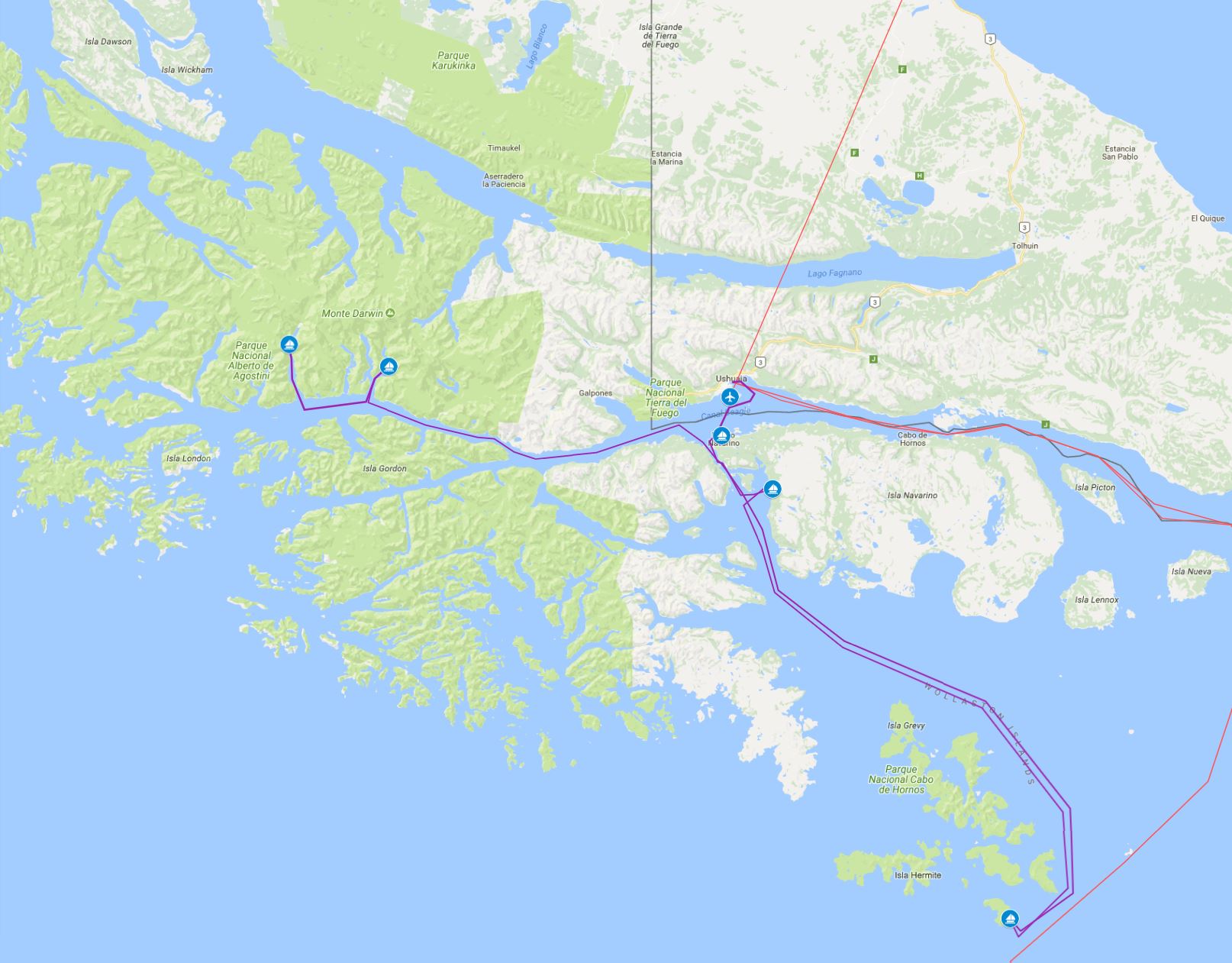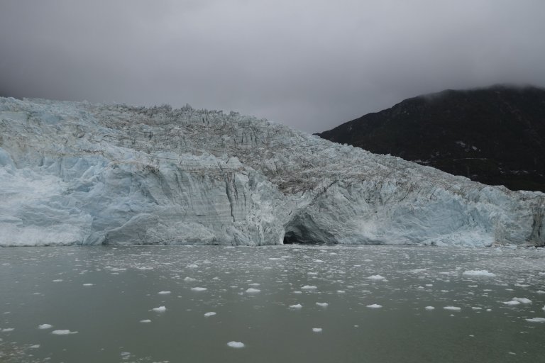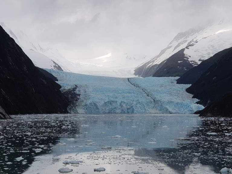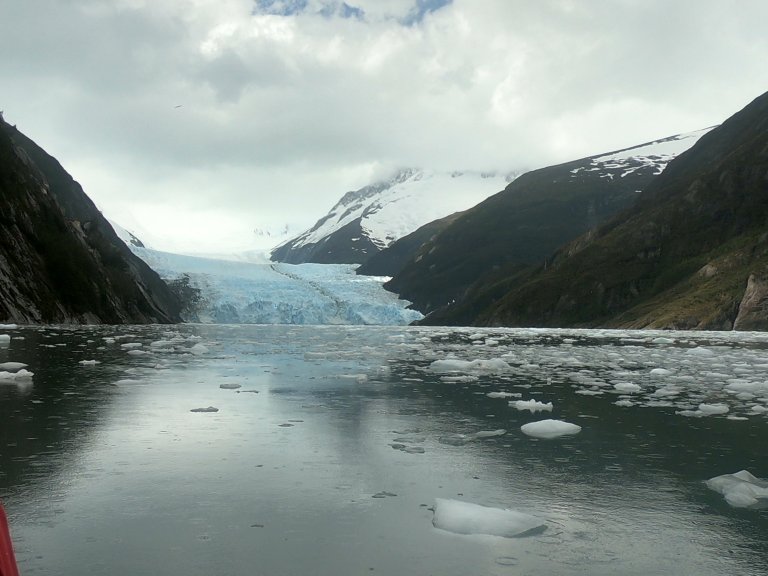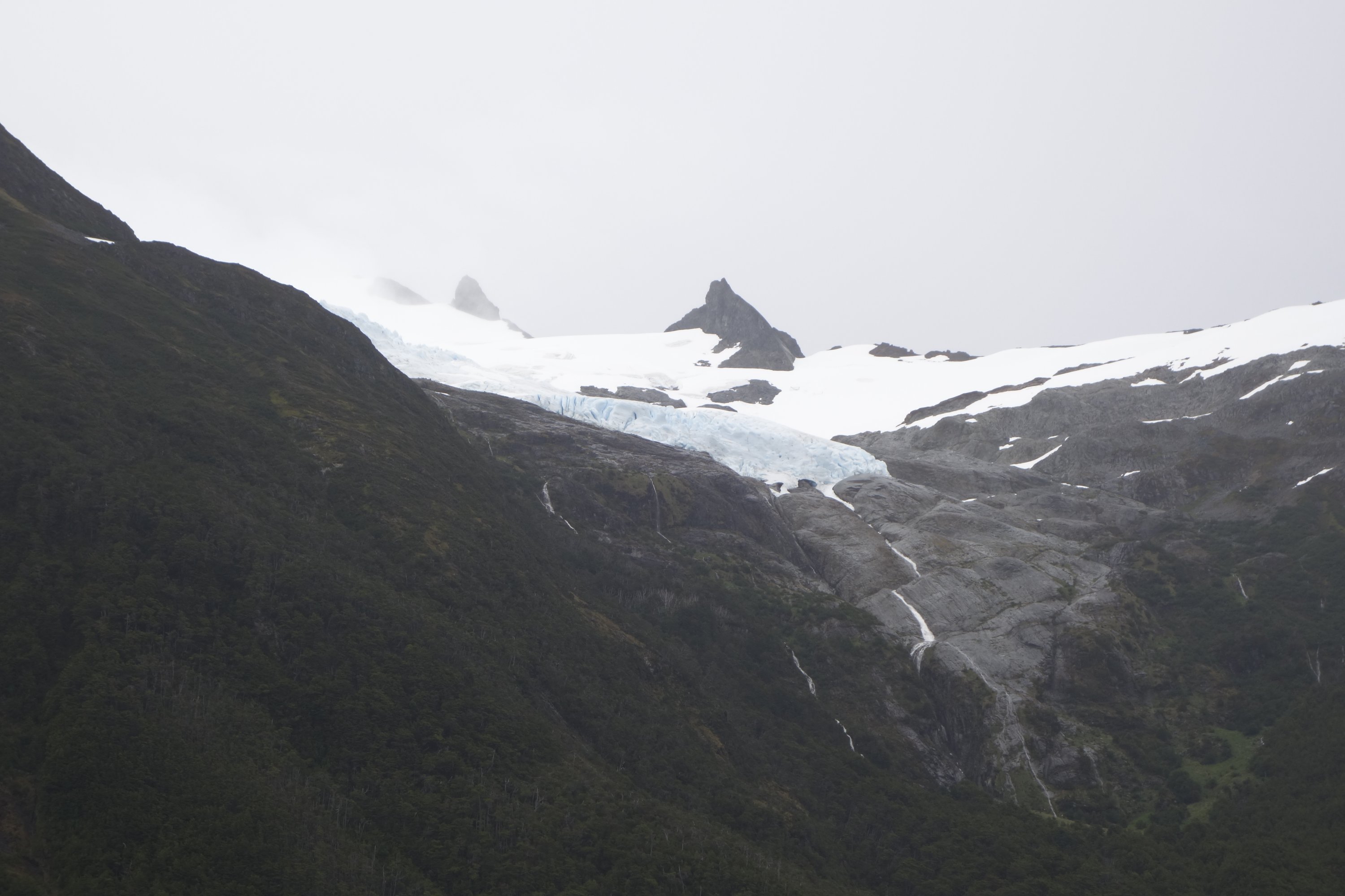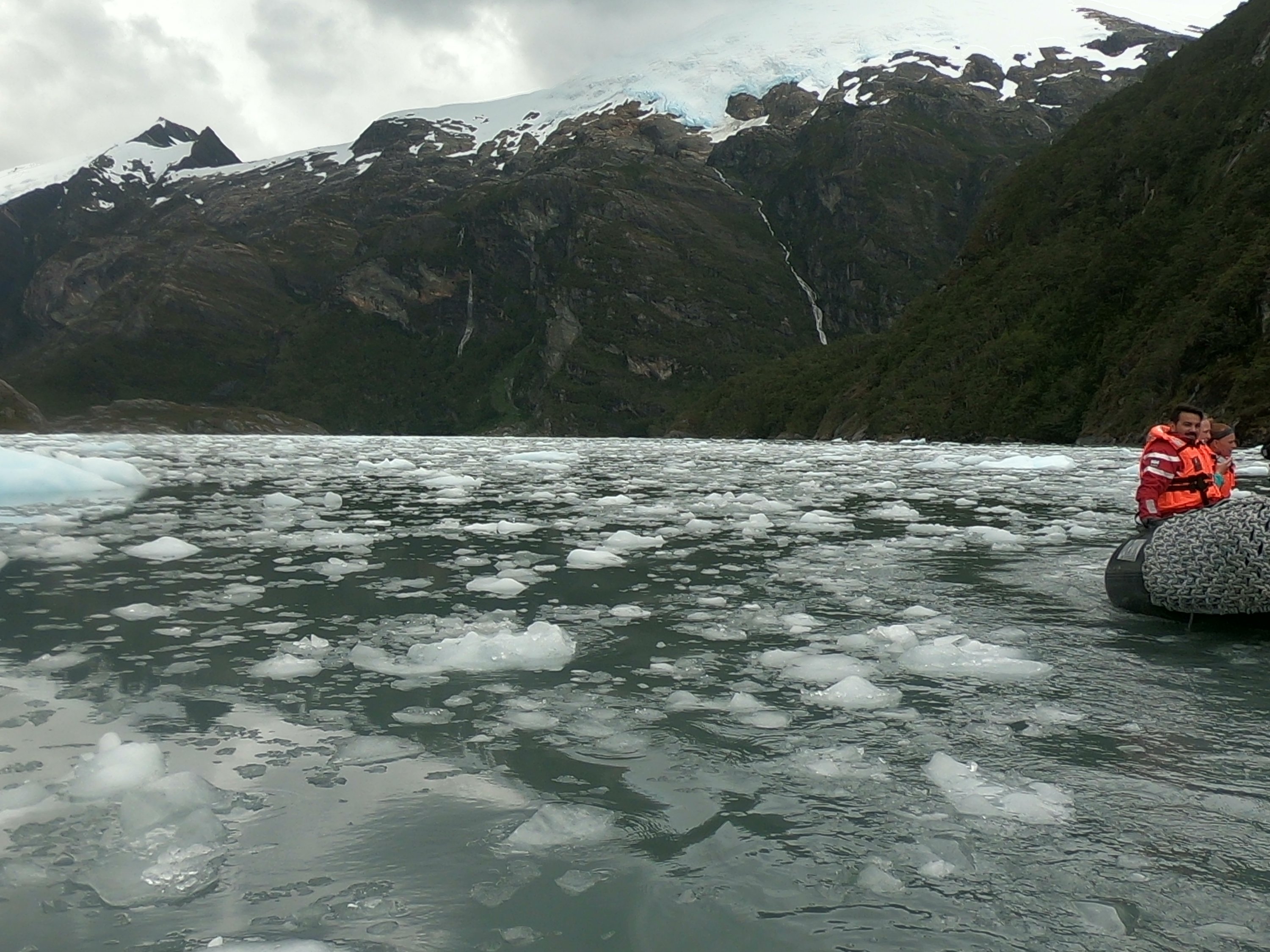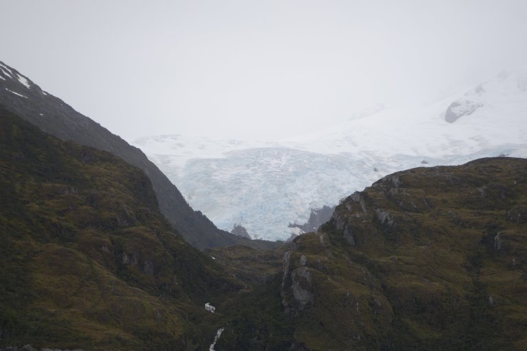 In the morning it is very misty. What a pity we start to cross some glaciers today. We get up at 6:00 am as we pass the Alley of the glaciers in the Cordillera Darwin: