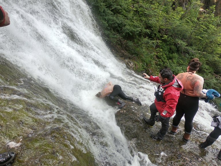 The hike is a climb through riverbed, cross a waterfall up a steep hill. Quite exhausting through a wonderful forest.