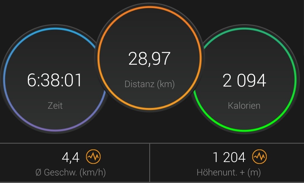 1.200 m altidue, 28,97 kms, 39.641 steps, goal achieved – we walked 1 km less, but 200 m more up. We earned our dinner at La Cava.