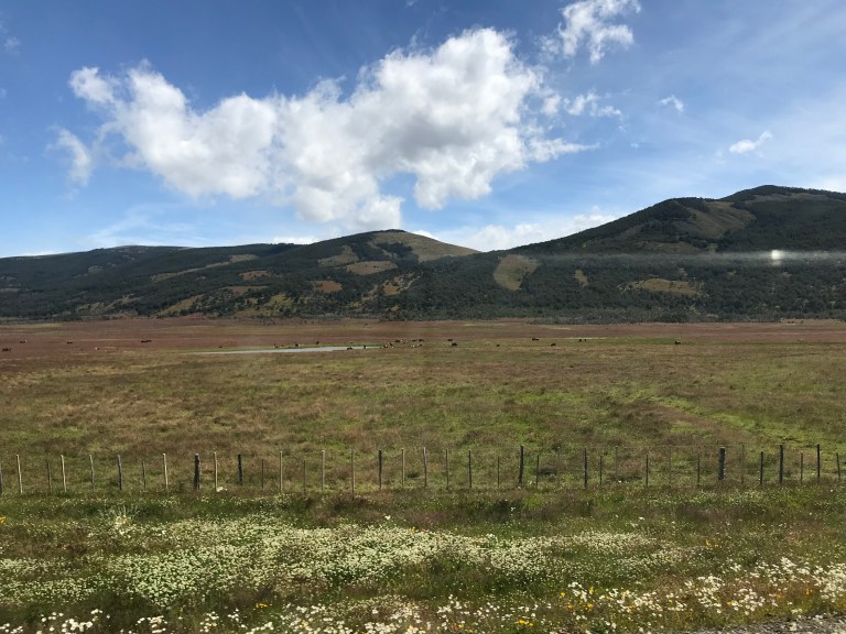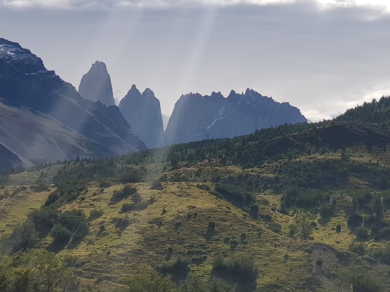 On the way into Parque Nacional Torres del Paine it clears up and we can already see the torres:
