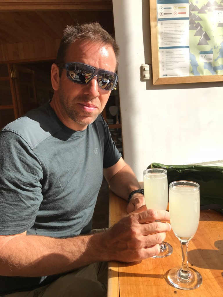 I cure my nicotine poisening with half a kilo sugar out of my Welcome drink pisco sour at the bar of the Camps restaurant. Christina smiles (the other 50 % aside the sugar from the pisco are alcohol. She has already finished hers half way).