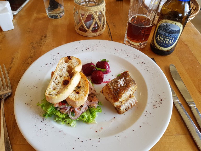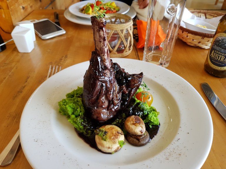Back in the hotel we go for last supper in Noi Indigo Patagonia’s restaurant and then catch the bus at 02:15 pm to Torres Central Camp. The purée of peas and avocado below the lamb shank was excellent and unexpected.