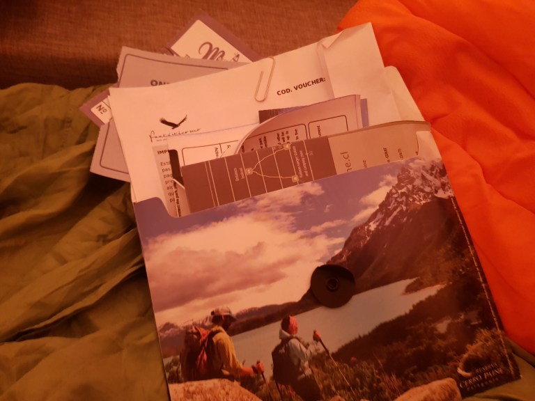 “You know, it is a self guided trip” means, you go, you carry, you navigate, … on your own. Happy boy scouts challenge. The girl from Fantastico Sur hands me over a map, approximately 67 vouchers (not tied together, mostly handwritten) and off I go.