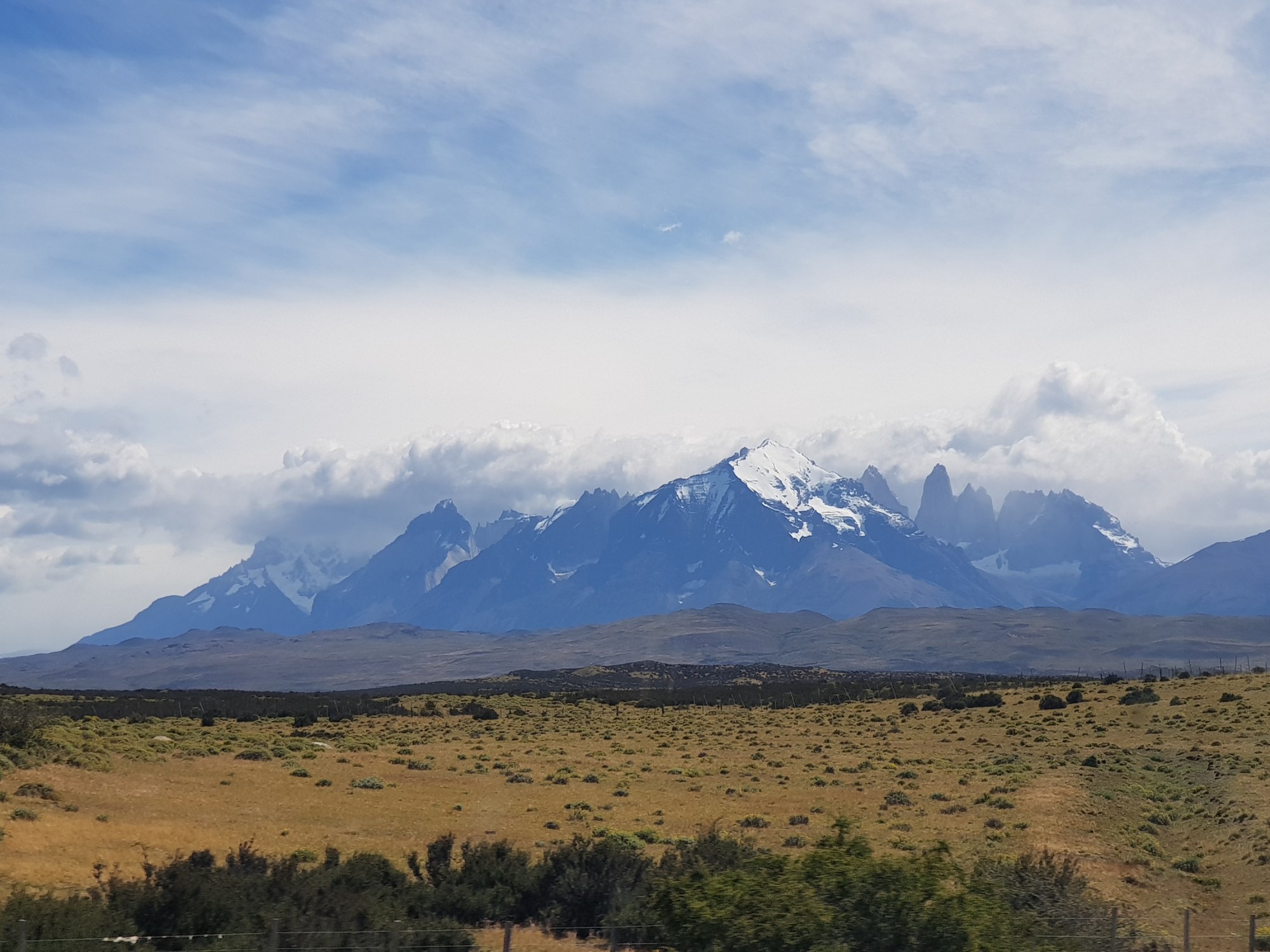On the way into Parque Nacional Torres del Paine it clears up and we can already see the torres: