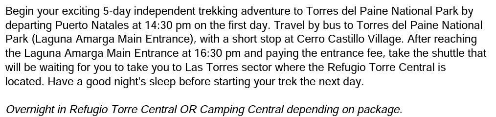 We booked the Torres del Paine W Trek 5D/4N package with Bamba Experience. In the end they all book with Fantastico Sur. So I go and get the vouchers and hiking directions from Fantastico Surs counter at the bus station.