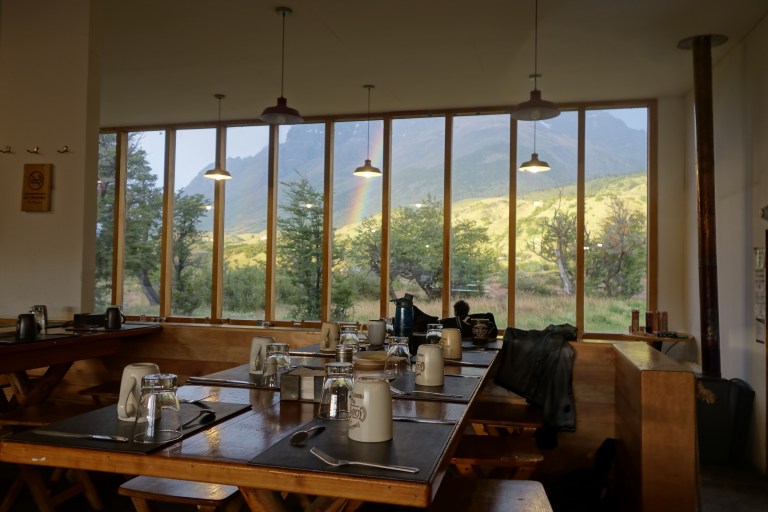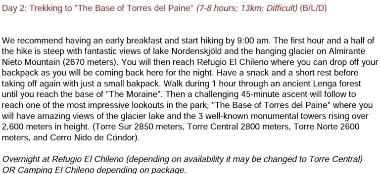 Breakfast is ok. Toast, scrambled eggs, cheese, cereals, coffee. With our two lunchbox-vouchers we get one regular lunchbag (in a nice fantastico sur bag – sandwich, orange, cereal bar, nestle chocolate, small bag of nuts) and another veggie one (orange, nuts, 4 cereal bars). We take our backbags and leave.