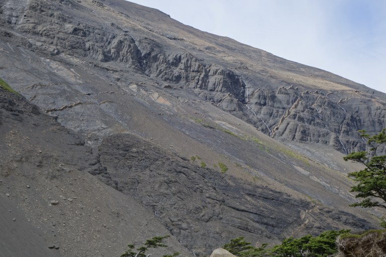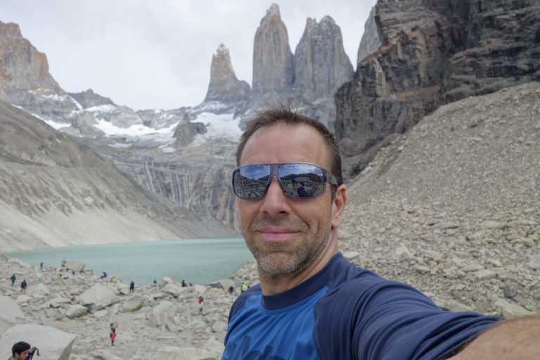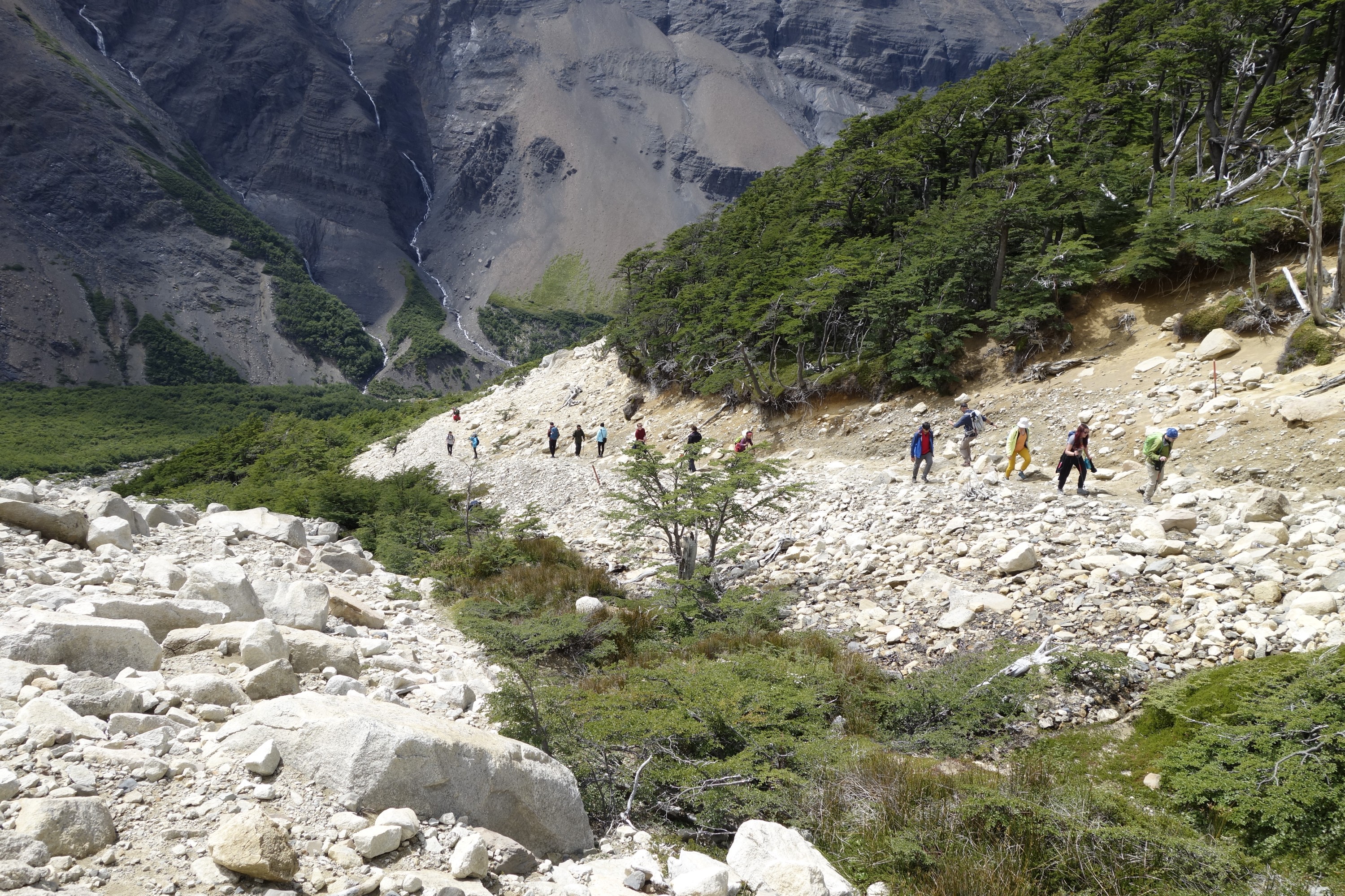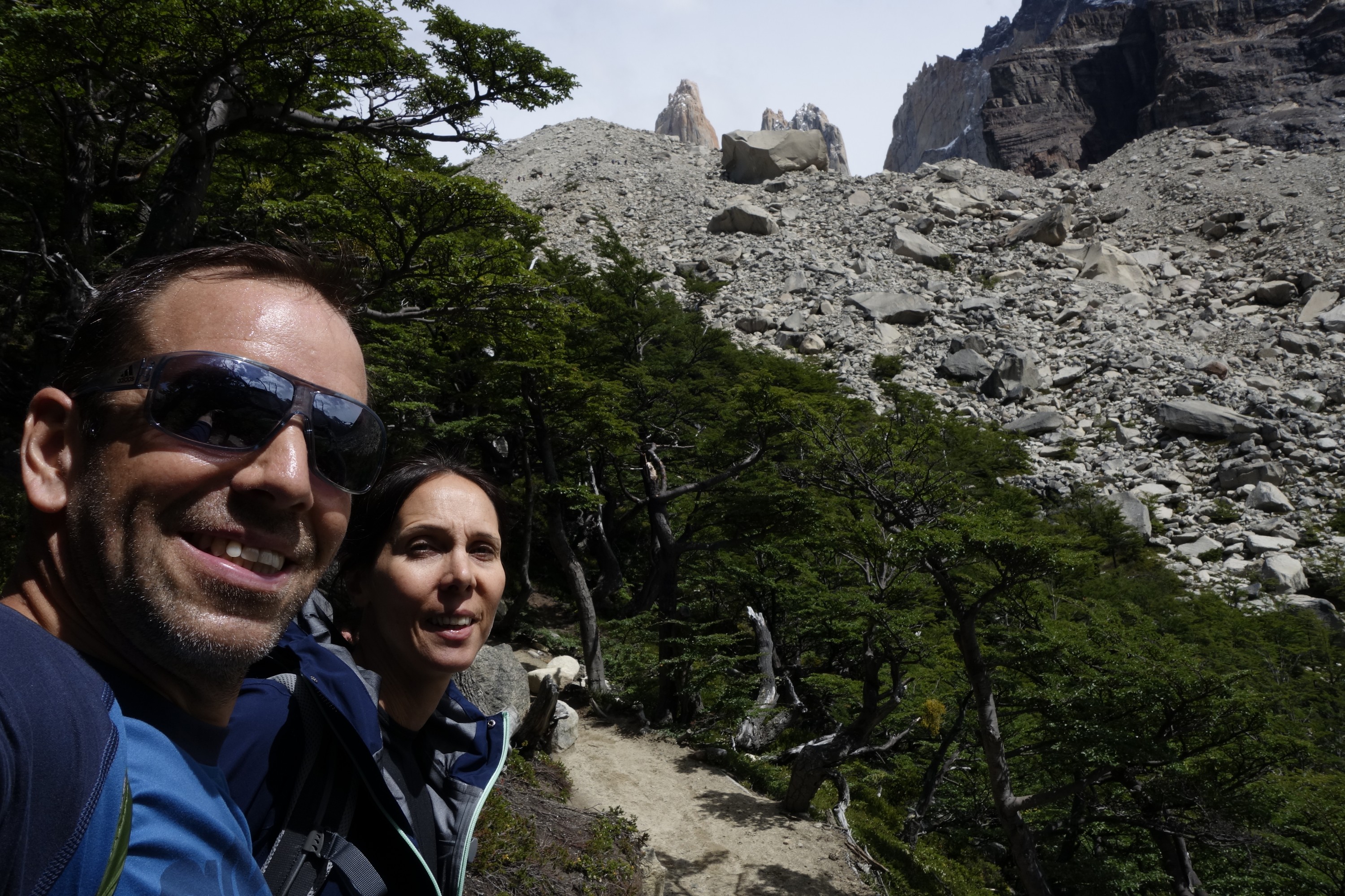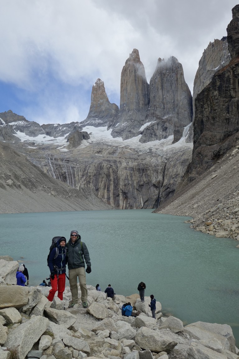 Finally after further 4 km uphill: Base Torres Lookout: Torre Sur (2850 masl) Torre Central (2800 masl) and Torre Norte (2600 masl).