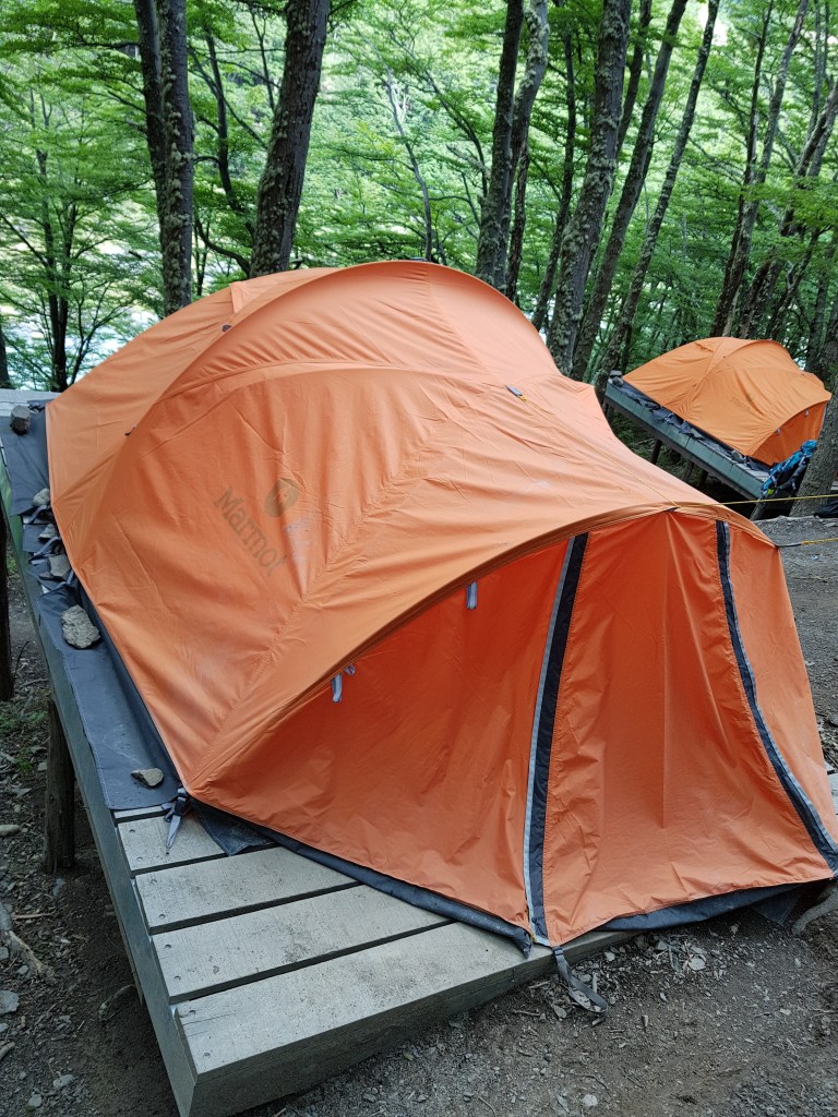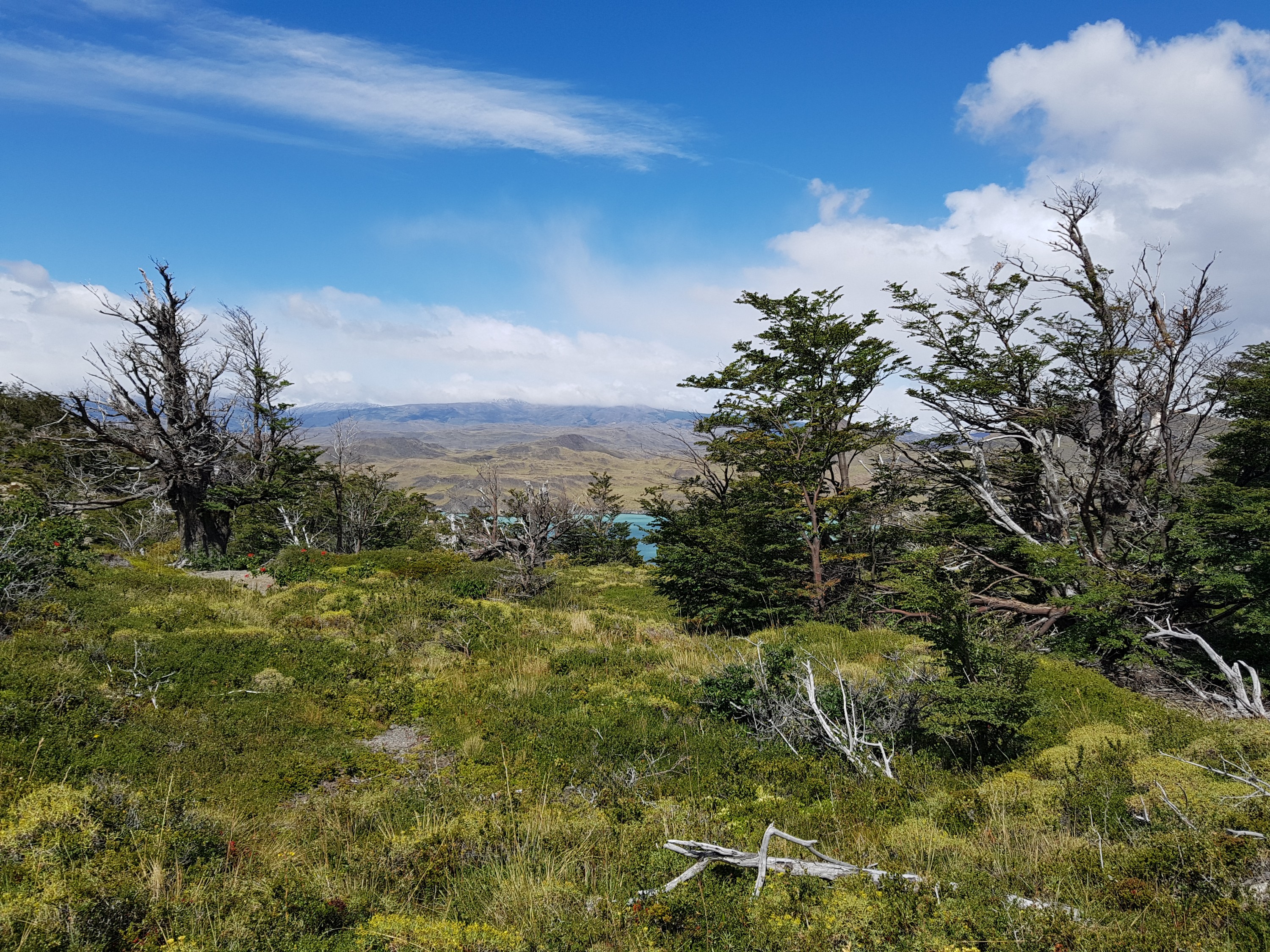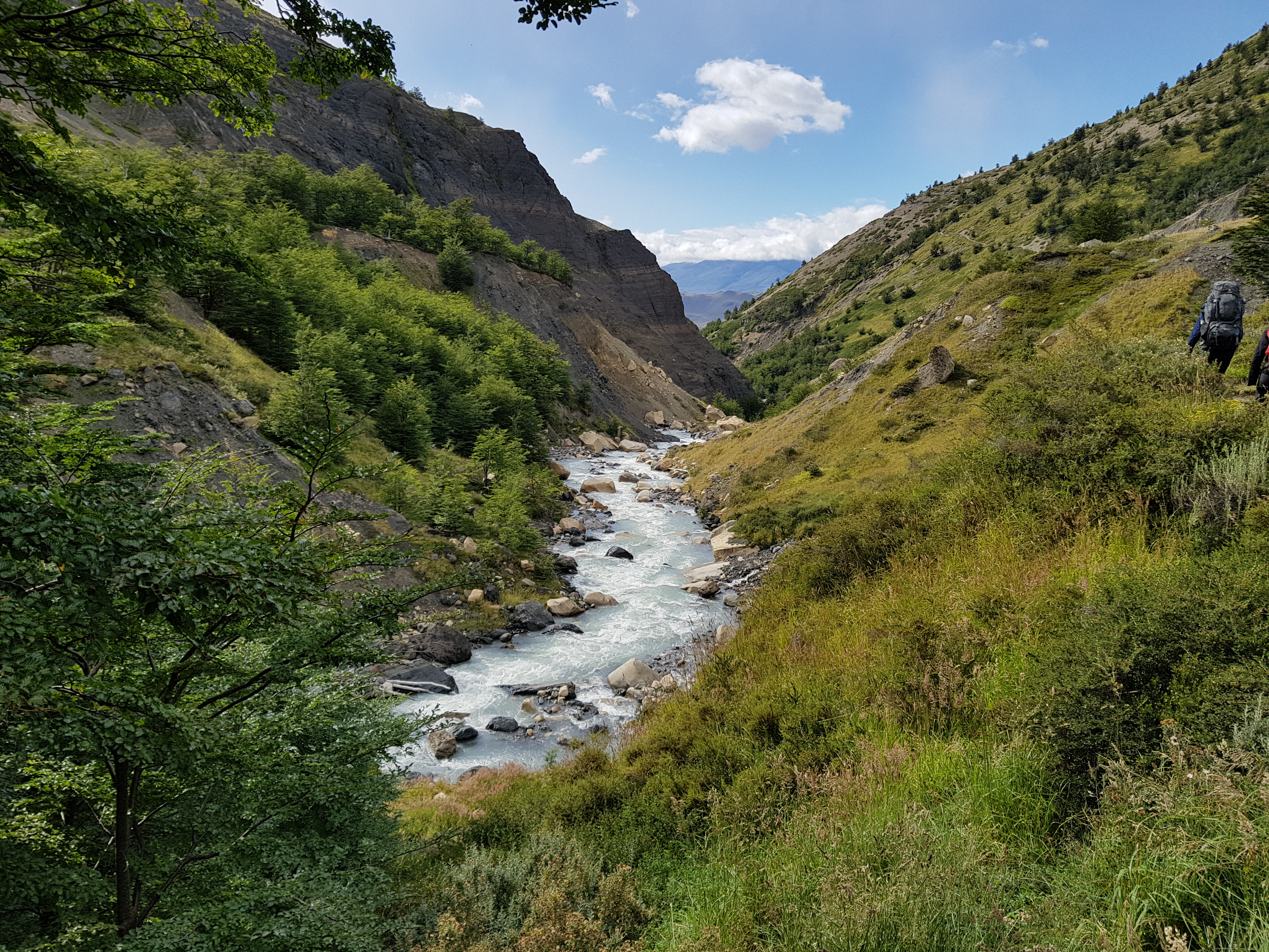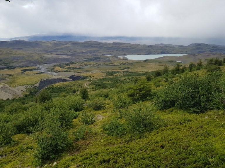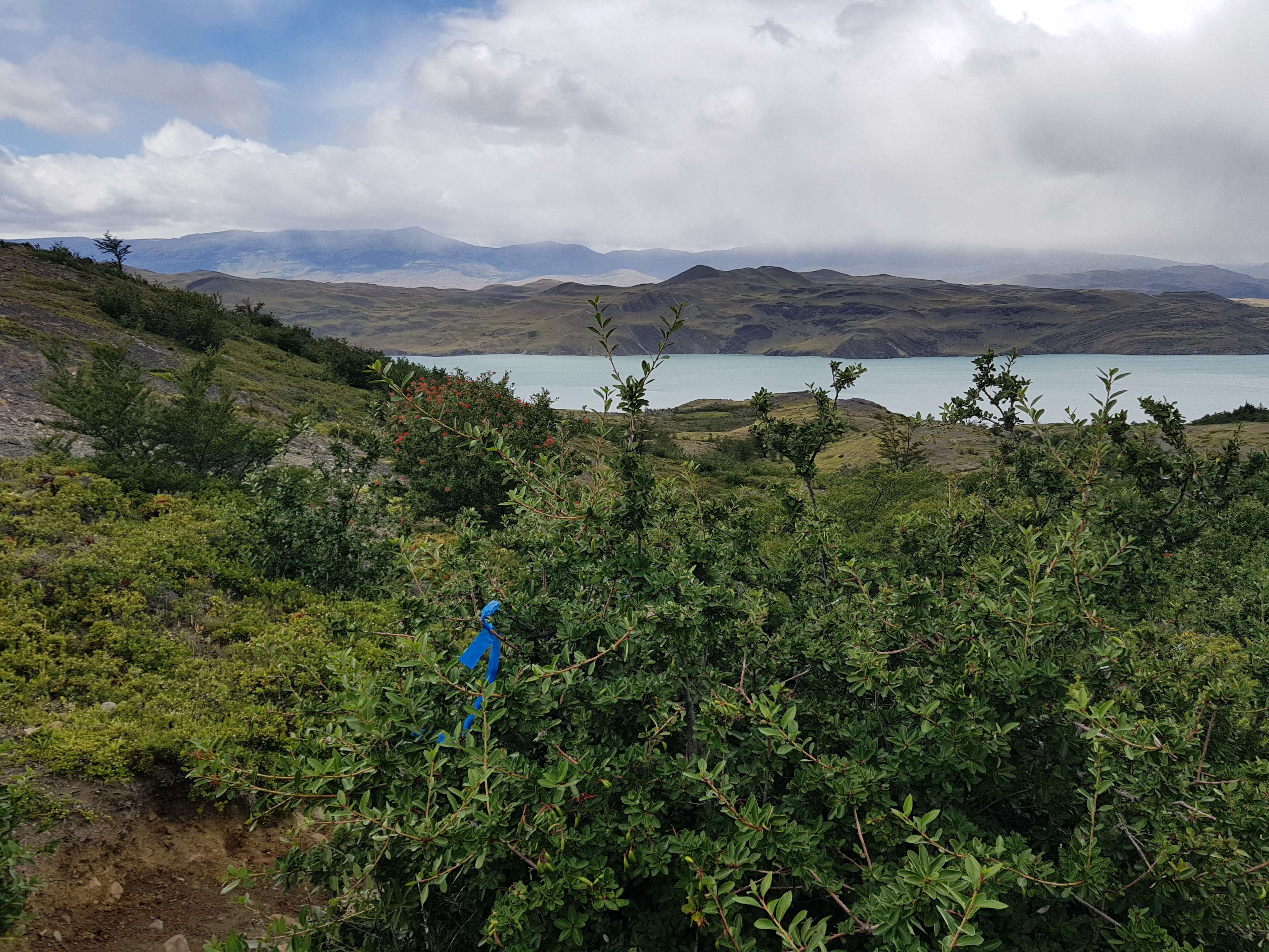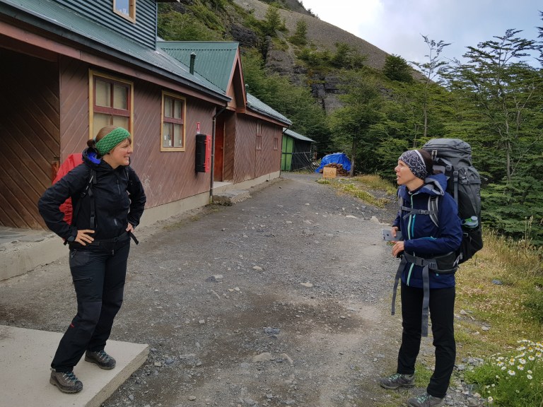 We start late. Todays walk is medium, mostly downhill, from the Refugio El Chileno, where we have slept, to Refugio Los Cuernos along Nordernskjöld lakes shore. We leave Camp El Chileno together with swiss Sonja.