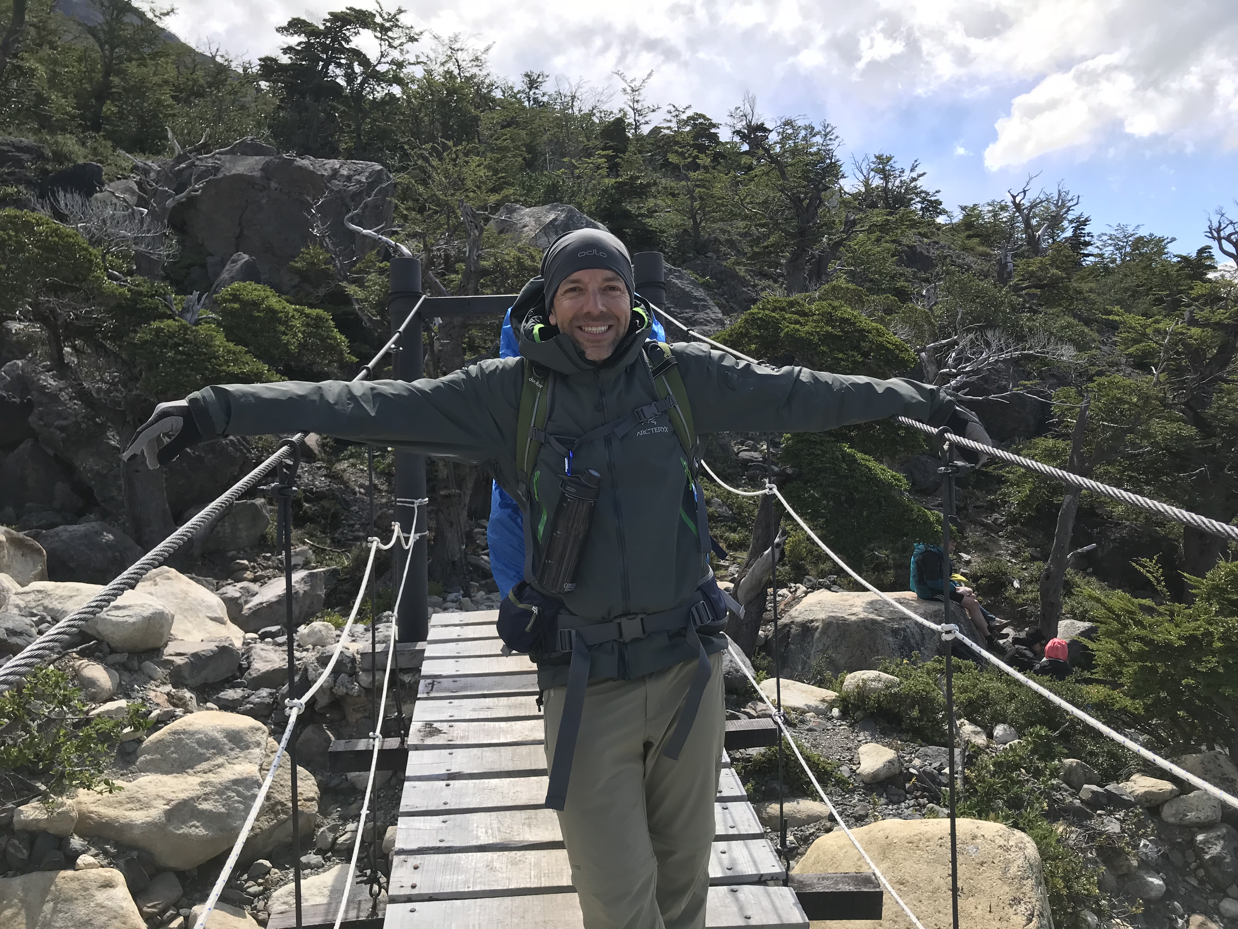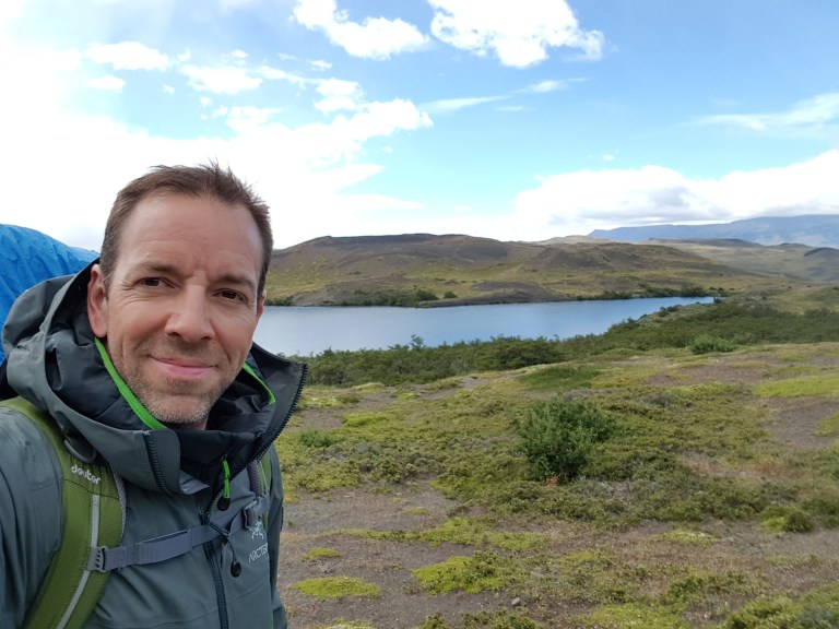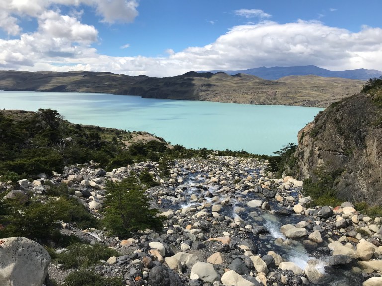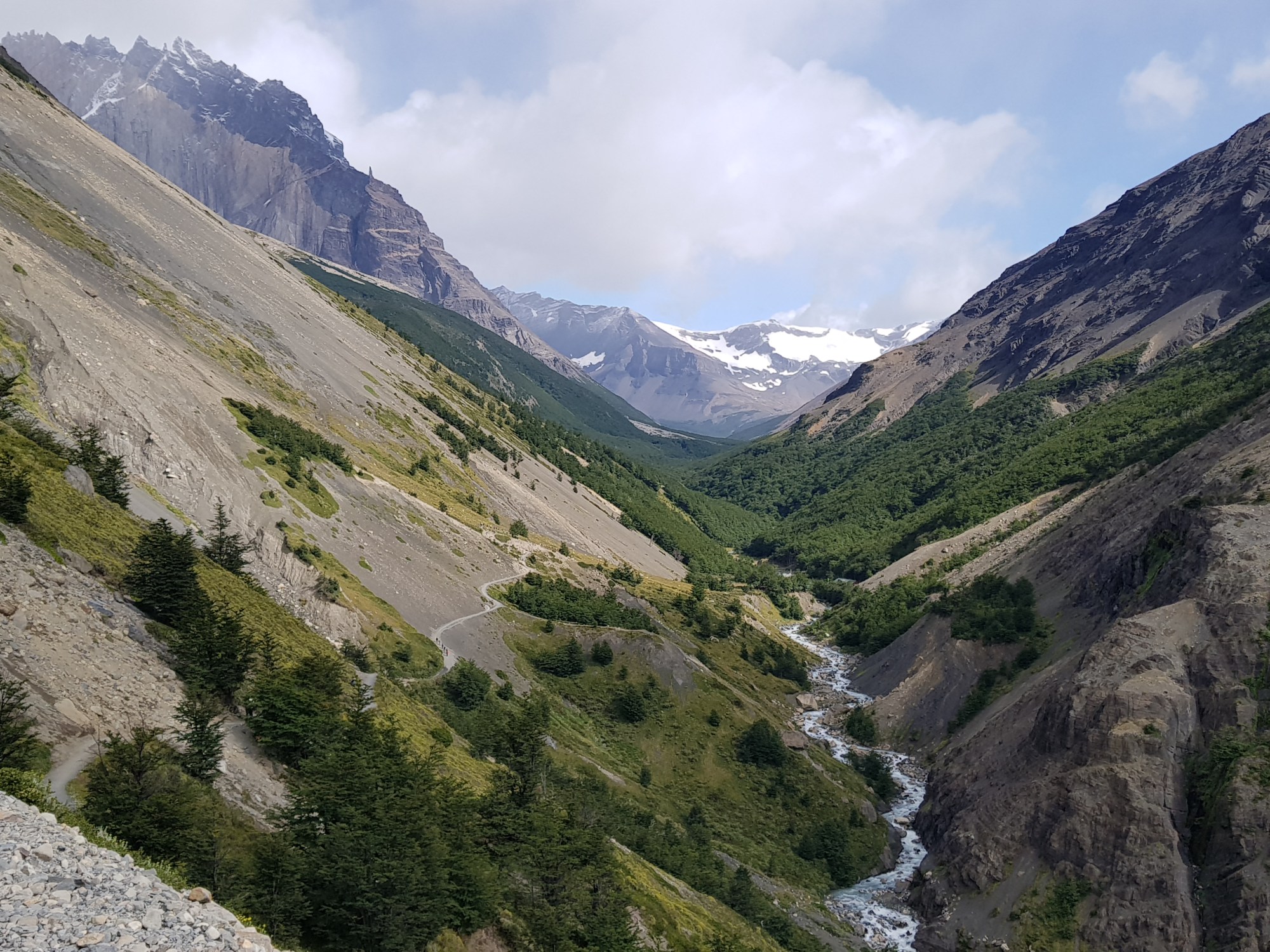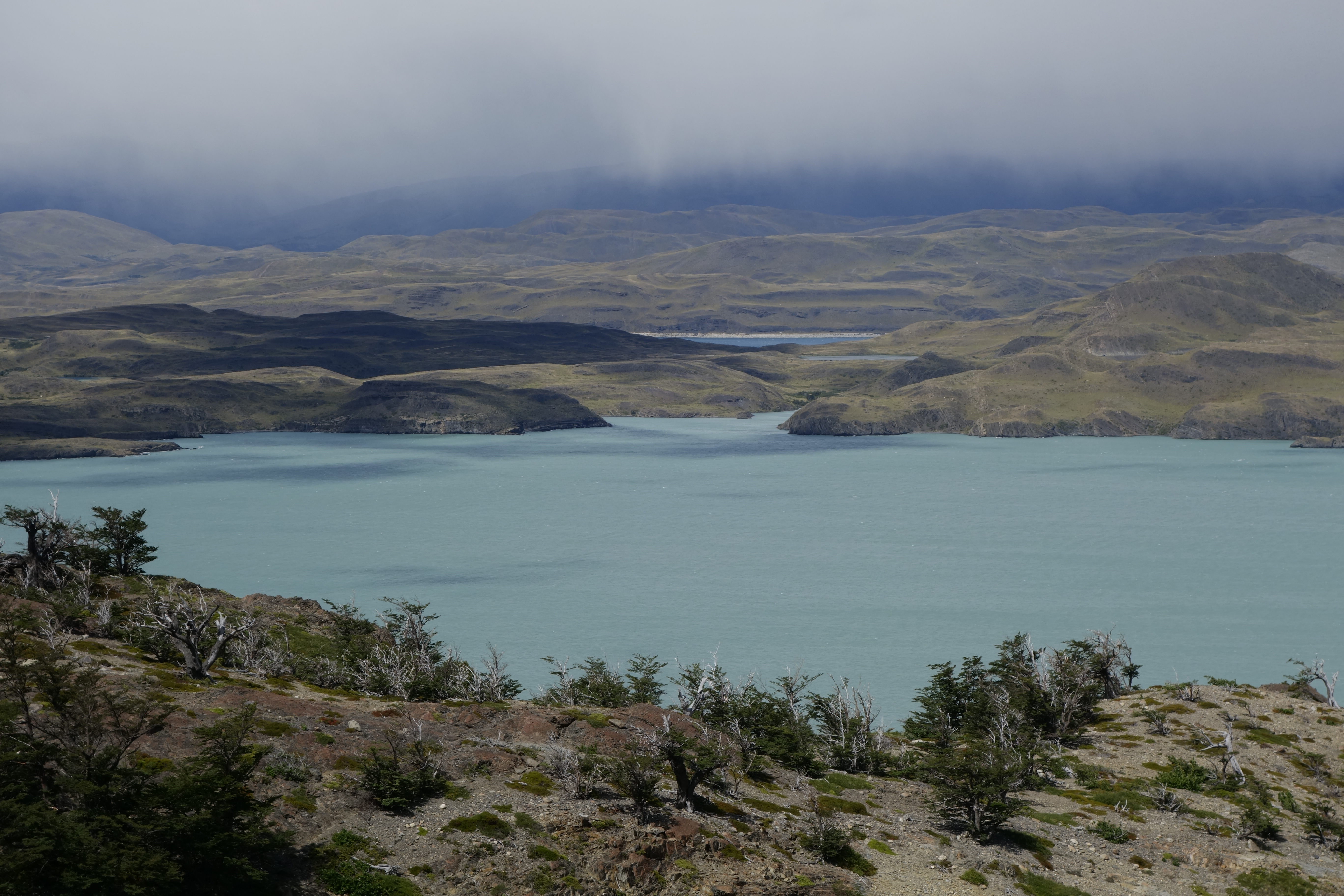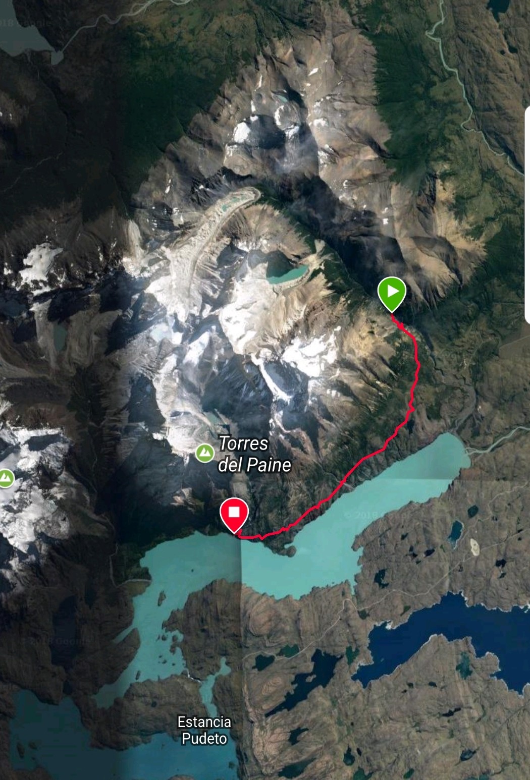 We start late. Todays walk is medium, mostly downhill, from the Refugio El Chileno, where we have slept, to Refugio Los Cuernos along Nordernskjöld lakes shore. We leave Camp El Chileno together with swiss Sonja.