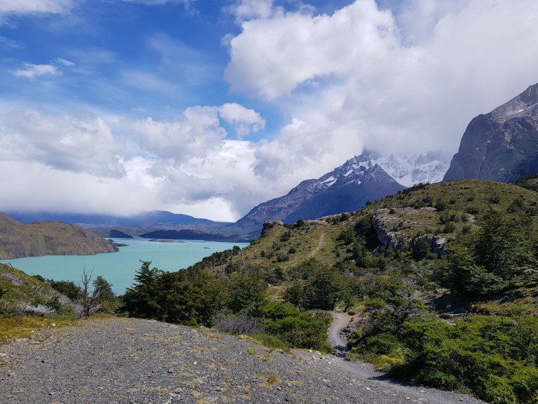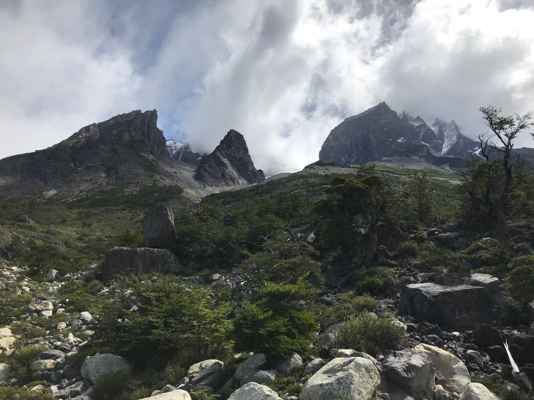 The path up to the Torres is covered in clouds. We were lucky with the weather yesterday.