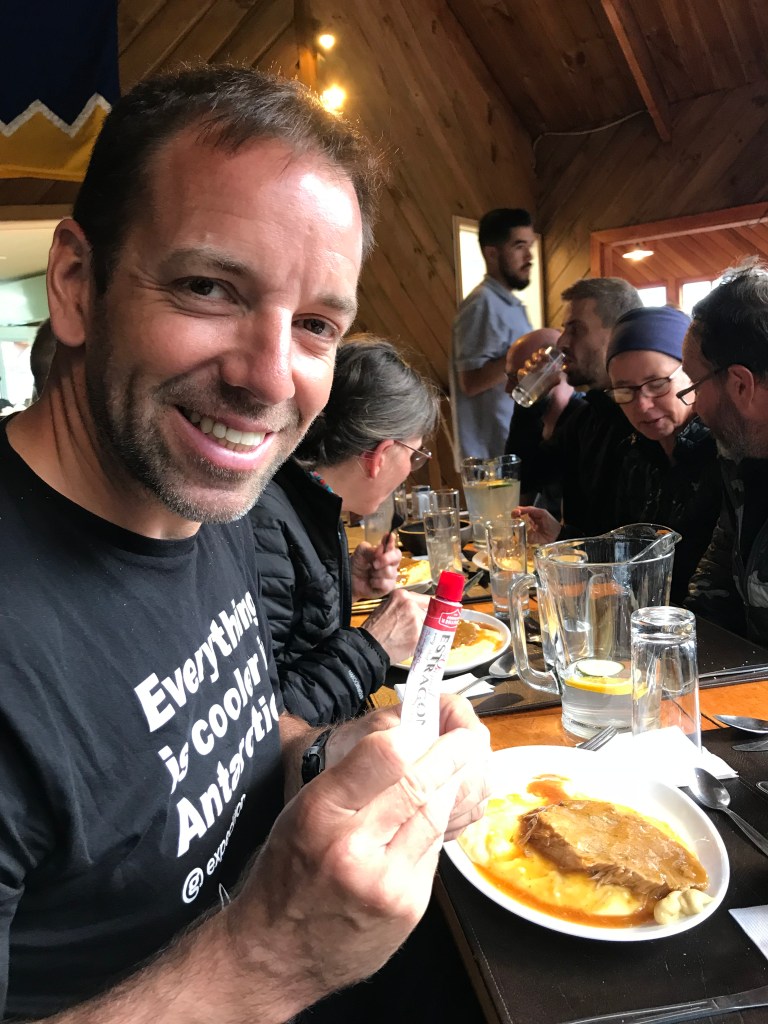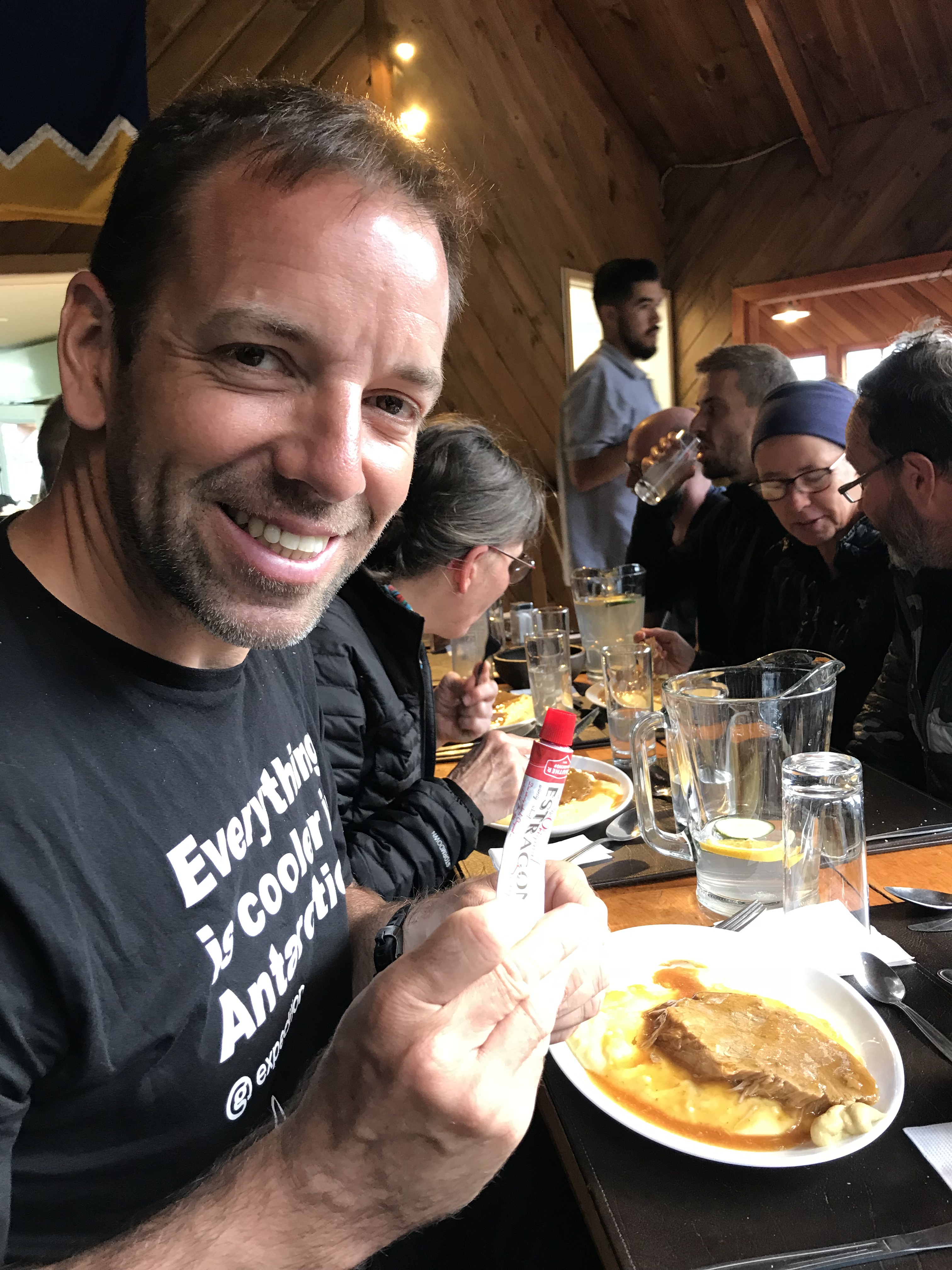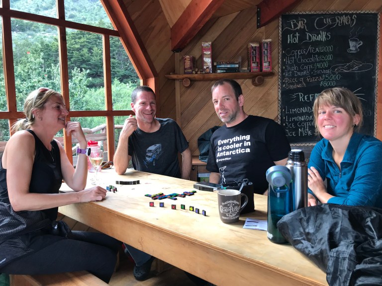 We reach camp Los Cuernos early at 14:45, give them our voucher, get 4 new one instead – have 1 vegetarian written on them and go for a hot shower. This time it is really hot. Then we go qirkeling with swiss sonja, canadian caroline and marteen. I win but not by a lot.