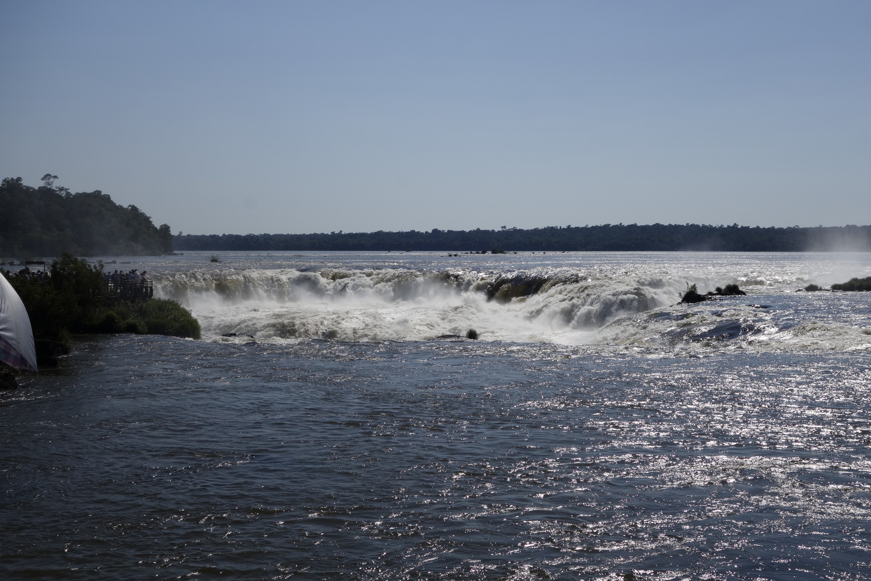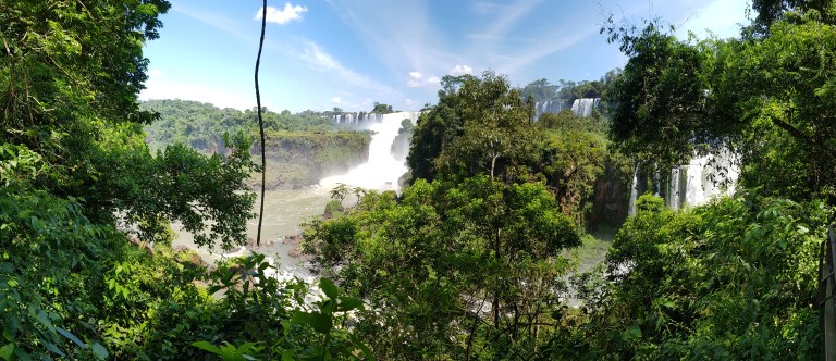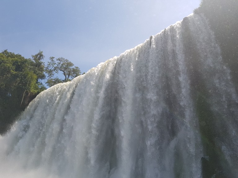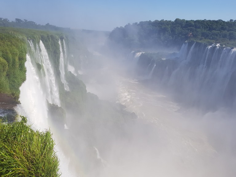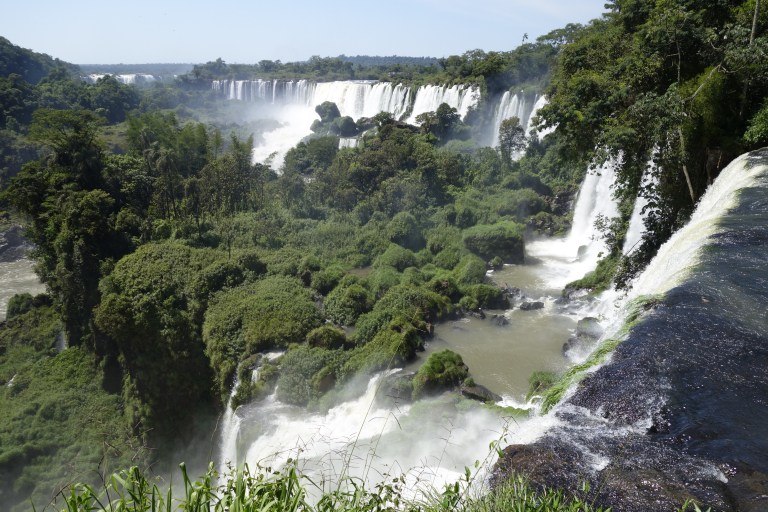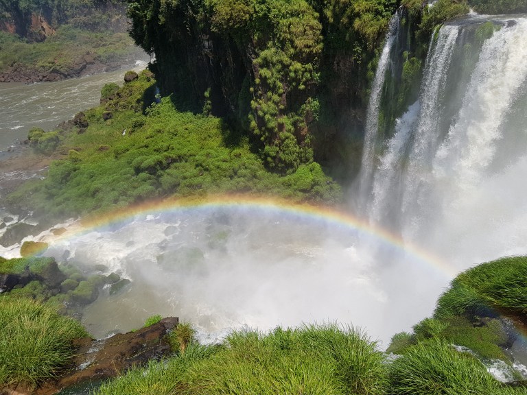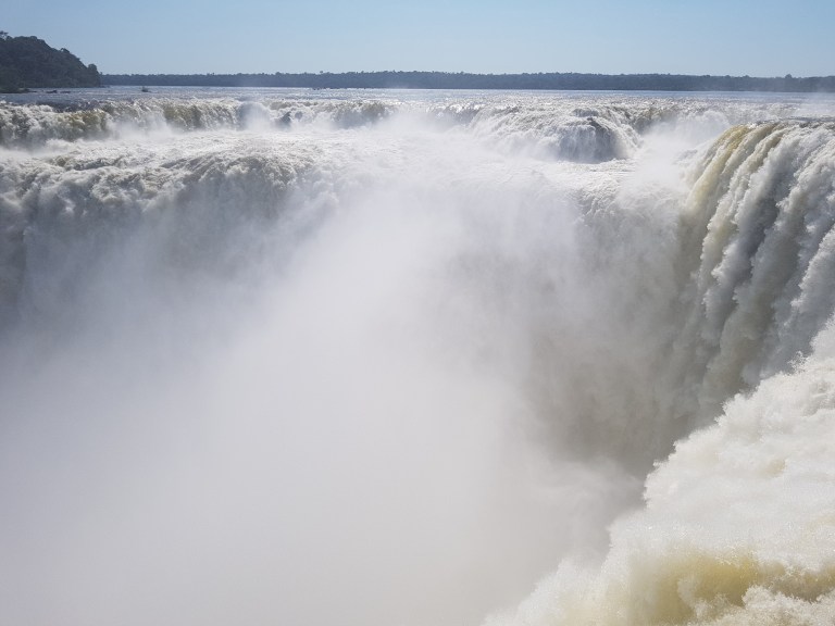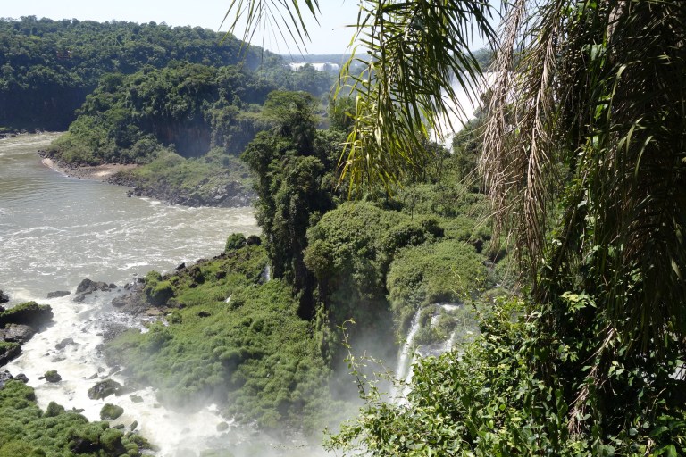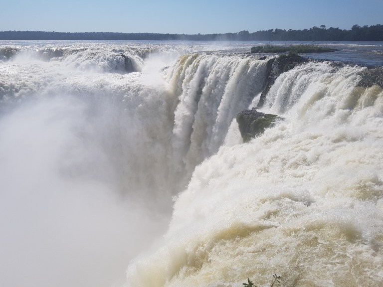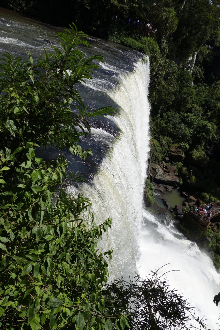 This is what they call the “upper trail”. You walk on a (more or less rotten) steel construction to a platform in a row of one with opposing traffic (so no overtaking, and the slowest of 5.000 guests a day dominates the tempo), from where you can look down the iguazu falls.