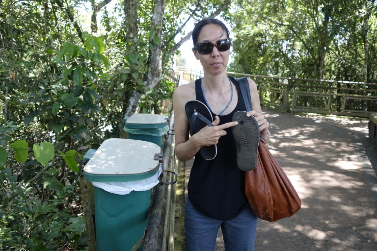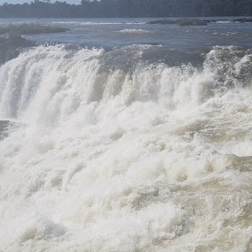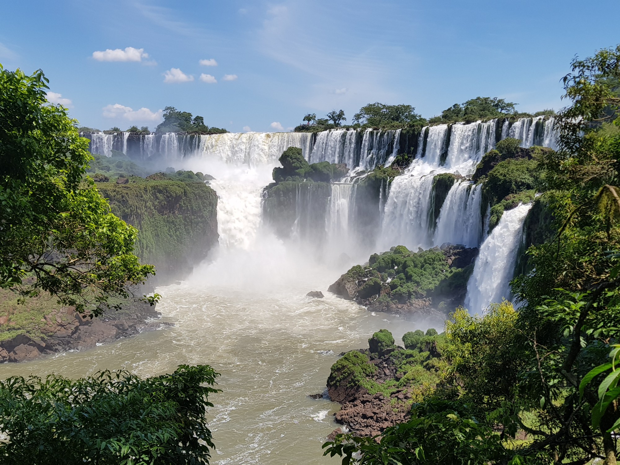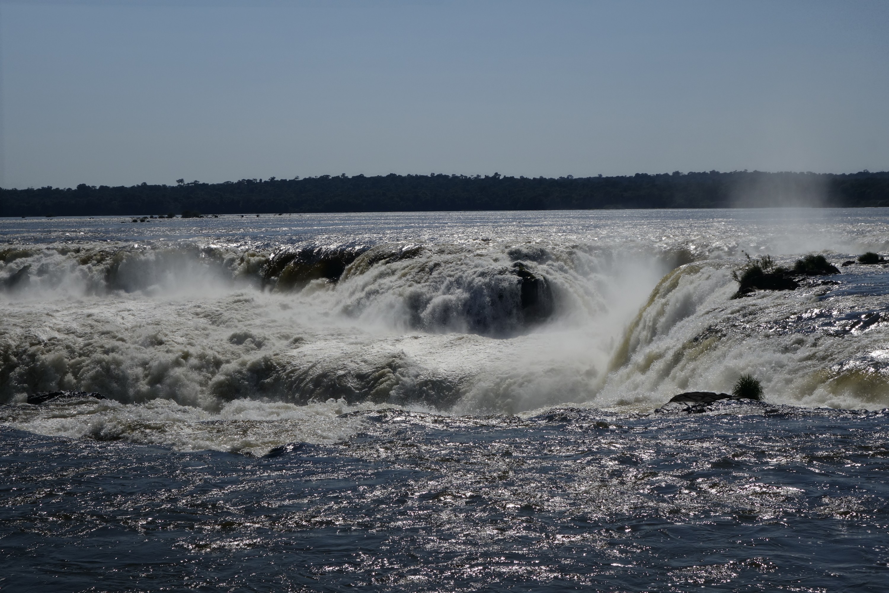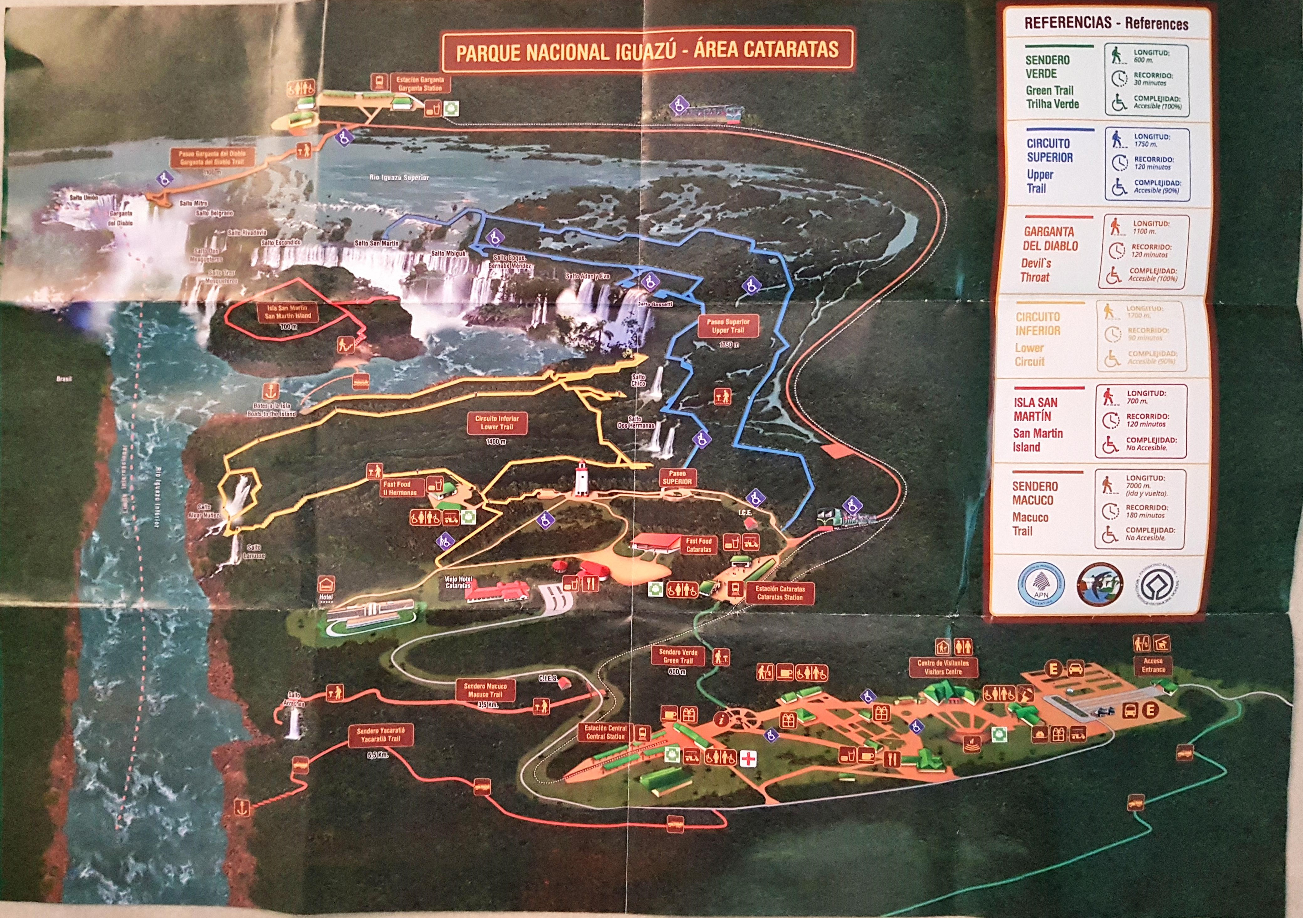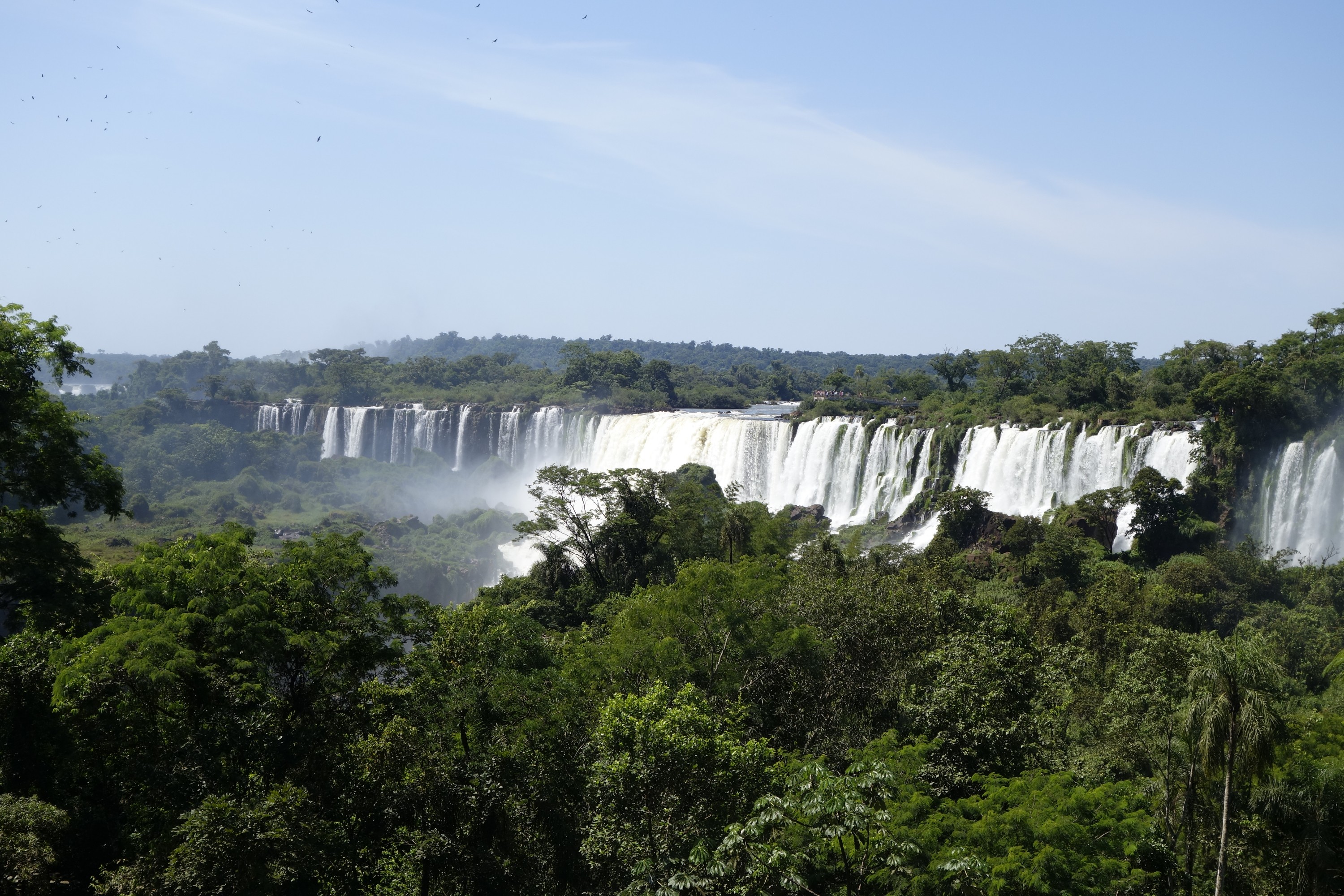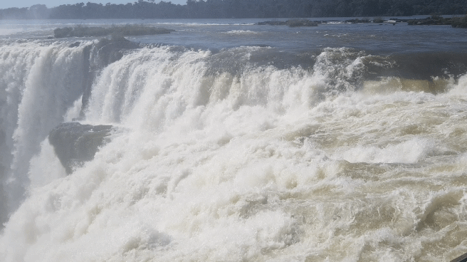 This is what they call the “upper trail”. You walk on a (more or less rotten) steel construction to a platform in a row of one with opposing traffic (so no overtaking, and the slowest of 5.000 guests a day dominates the tempo), from where you can look down the iguazu falls.