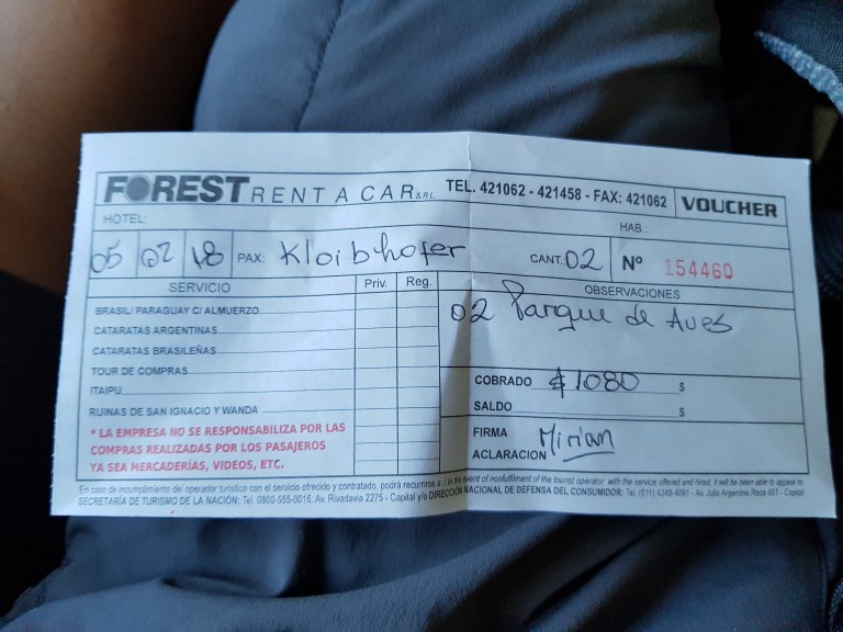 The bus for todays tour to the brazilian side of the Iguazu falls picks us in the front of our hotel.