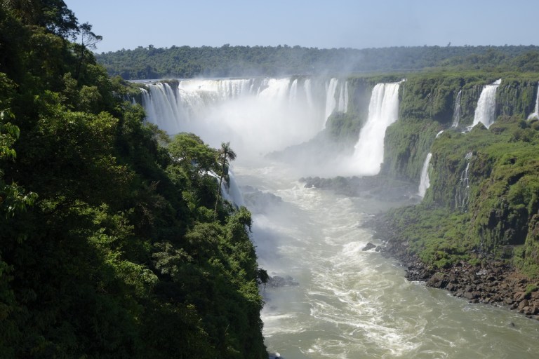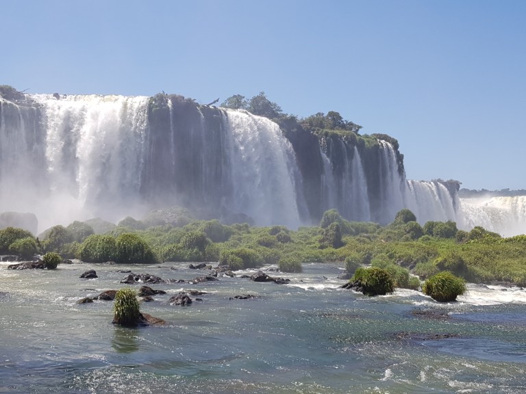 The emmigration from argentina took some time as always, brazil immigration was rather fast. We walk to the brazilian sidewalk to the Iguazu falls, which is comparable less touristic, but you can go down and watch the falls from below (And get really wet).