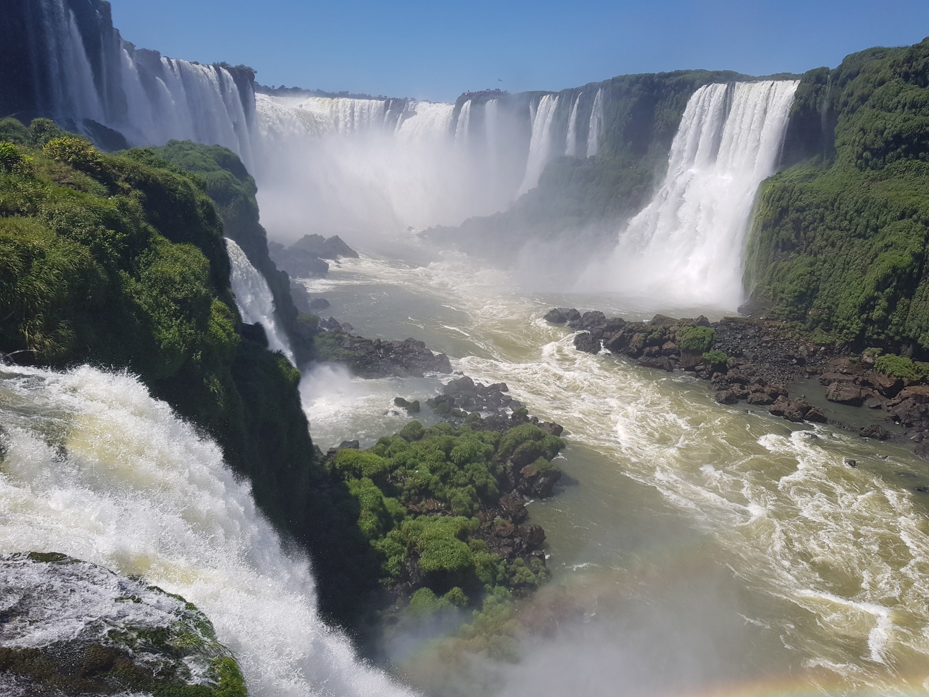 The emmigration from argentina took some time as always, brazil immigration was rather fast. We walk to the brazilian sidewalk to the Iguazu falls, which is comparable less touristic, but you can go down and watch the falls from below (And get really wet).
