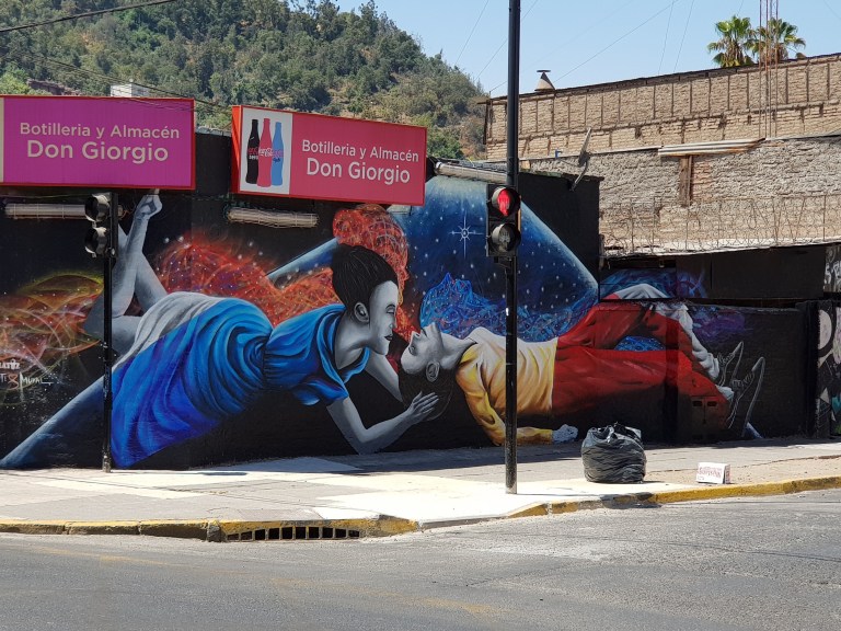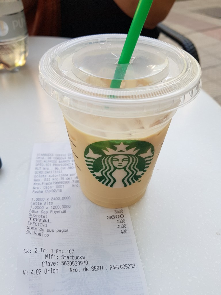 Then we walk to the city center through the business district. We go to starbucks, order an ice coffee with vanillia ice. Sure, they know, “Todo Bien”, I get a Latte with ice cubes. Welcome to starbucks chile.