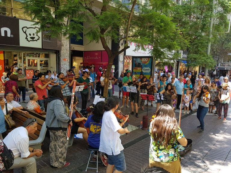 As we go out the violin players are there again and we stop there to listen, chilenos like public classic music.