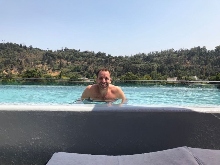 Still in Santiago de Chile. We get used to the espresso machine in the morning. Weather is supersunny, hot, bluesky.