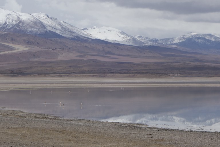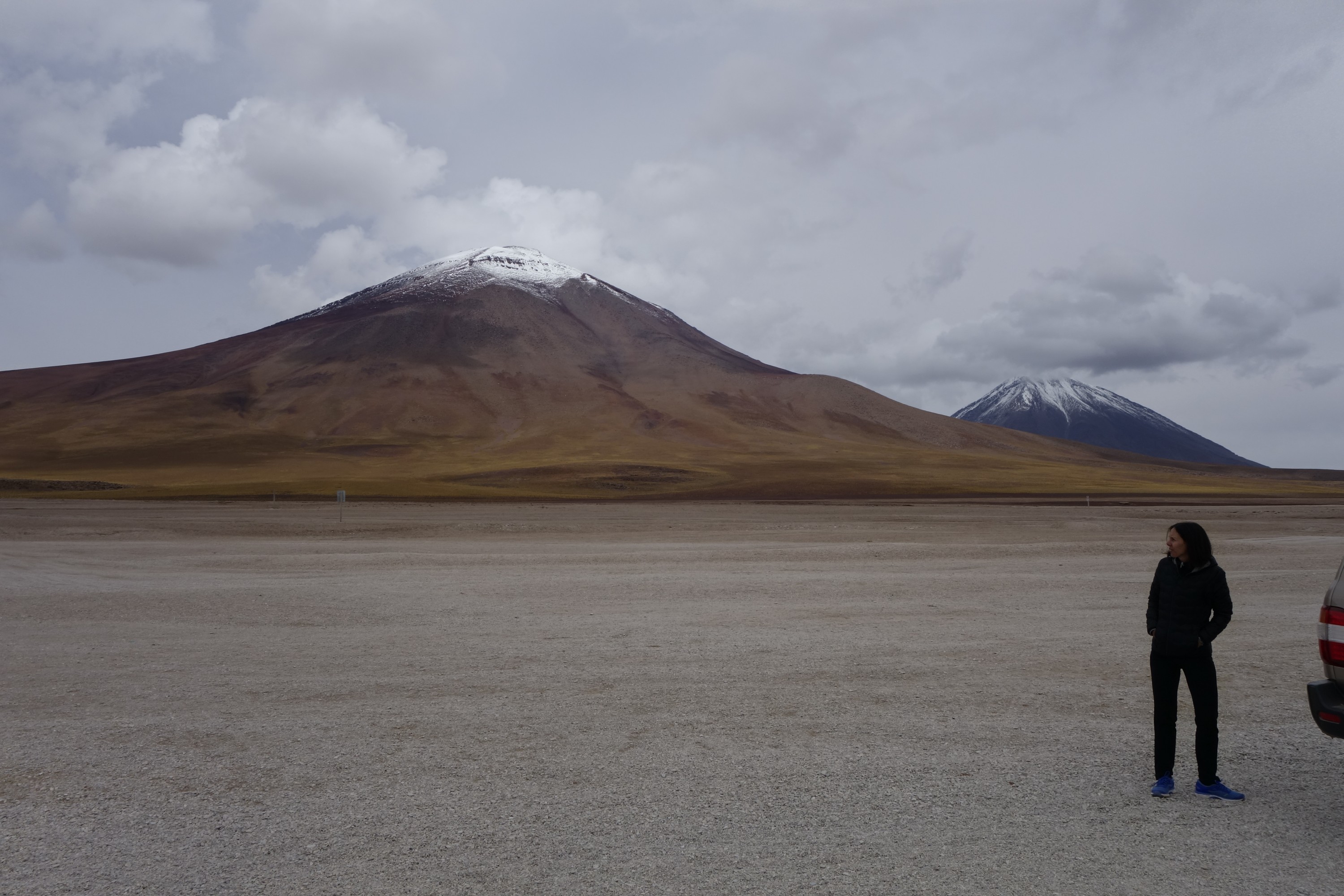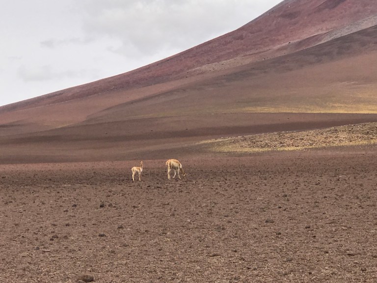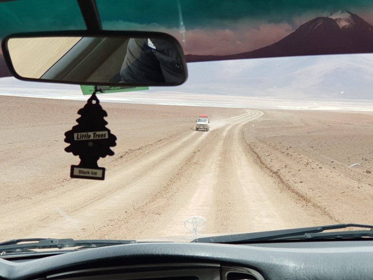 We drive into Eduardo Avaroa National of Andean Fauna to Laguna Blanca and then Laguna Verde. I am happy that our luggage is in the trunk. It is super dusty.