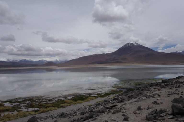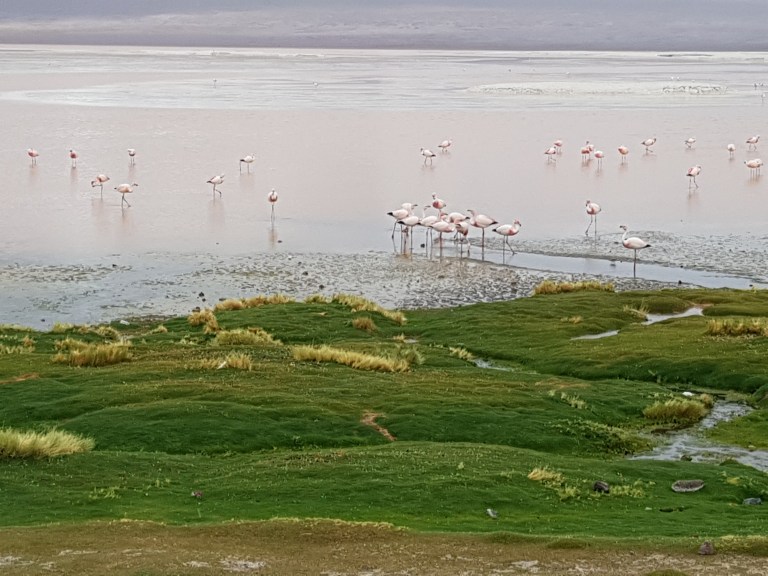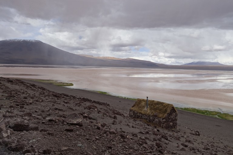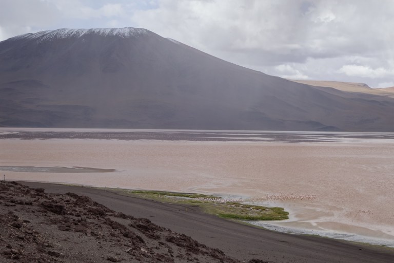First we drive to Laguna Blanca and Laguna Verde. The lagoons are not really blanco or verde, because of the rain. In dry season Colors are more intensive Elia tells us.