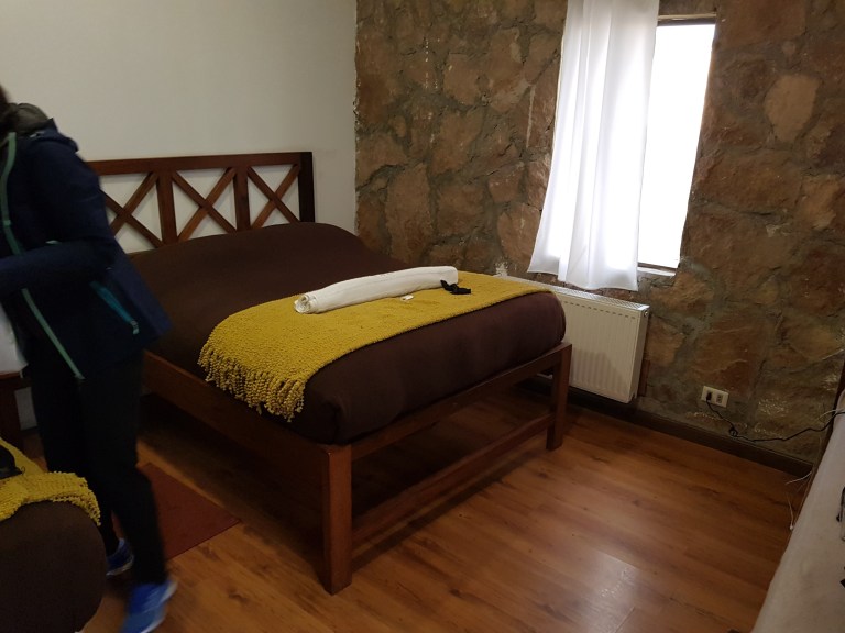 Finally we reach our hotel: Ojo de Perdiz (or Hotel Tayka del Desierto), basic, autarkic, in the middle of nowwhere, one dinner option, power until 20:00, heating until 22:00. But WiFi, of course.