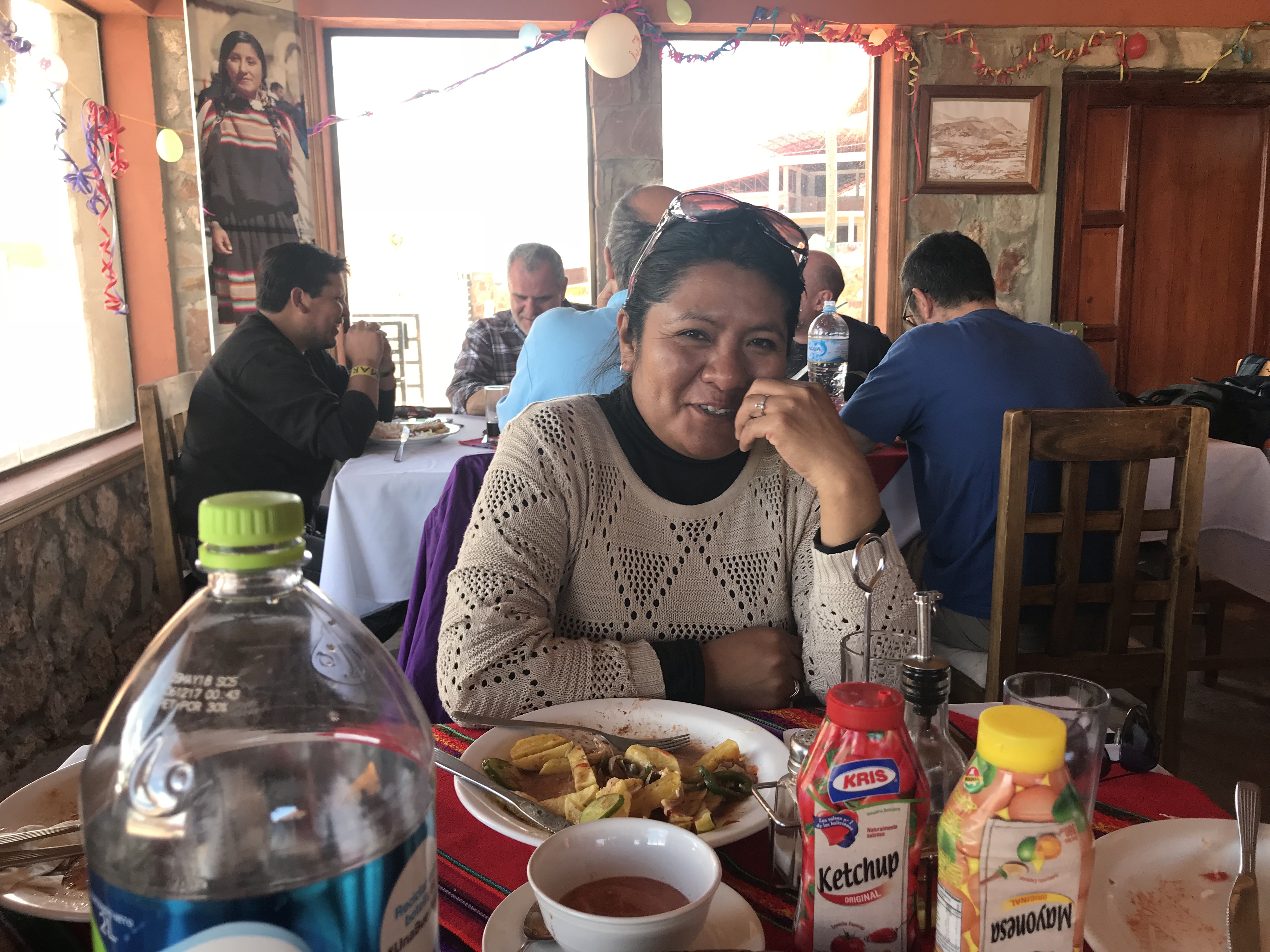 Elia, our guide, is even more damaged but smiles. She always smiles. The staff quarters are very noisy and not really isolated, she tells. But no worries. I like the Bolivians, they always smile and seem happy.