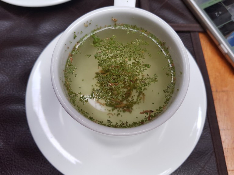 I get up completely damaged. The dinner was not good for my stomach to digest, but breathing is easier now. Christina has heavy headache. She gets a rika rika tea, which may help against altitude. It is not hot. Opposite.