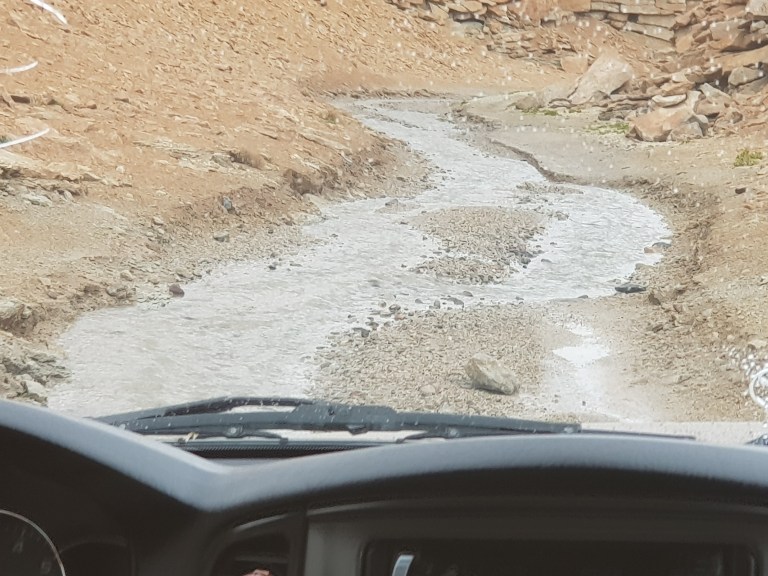 We start to drive the Ruta des las Joyas Altoandinas a famouse Mountainbike track. Weather is more rainy and windy. First we meet mr. curious Desert rabbit (according to our driver Chavier good to barbecue). Elia says he is hoping for food, so we share our emergency cereal keks.