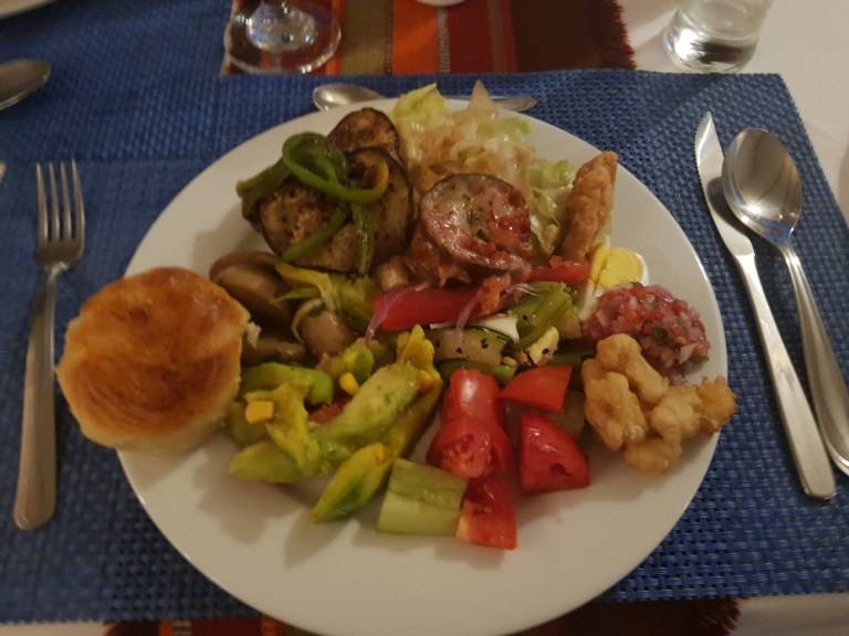Always good to have our own cereals with us. Breakfast is very limited, some (fresh) sweat bread, scrambled eggs, marmelade, sugared cornflakes, nescafe. Anyway, we are in the middle of no-where. At least there is breakfast.