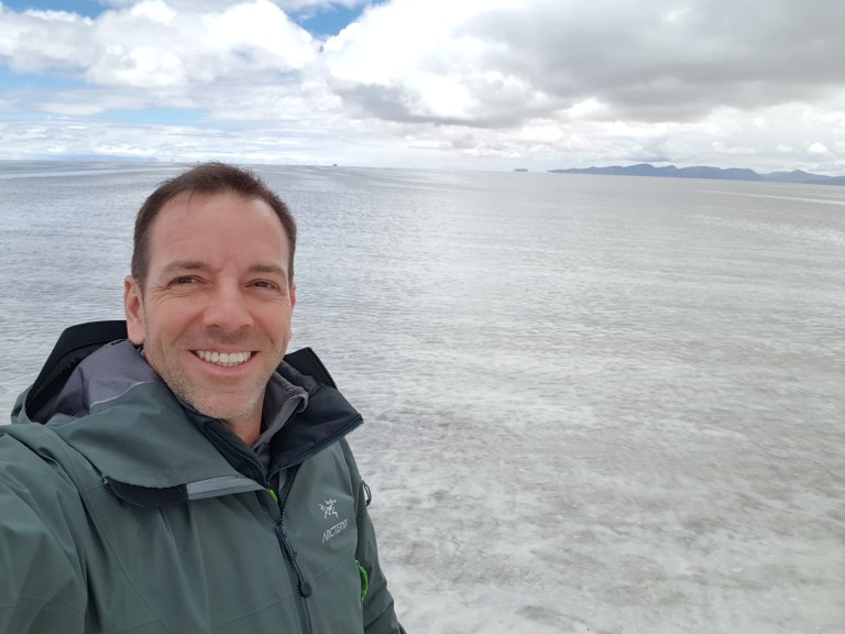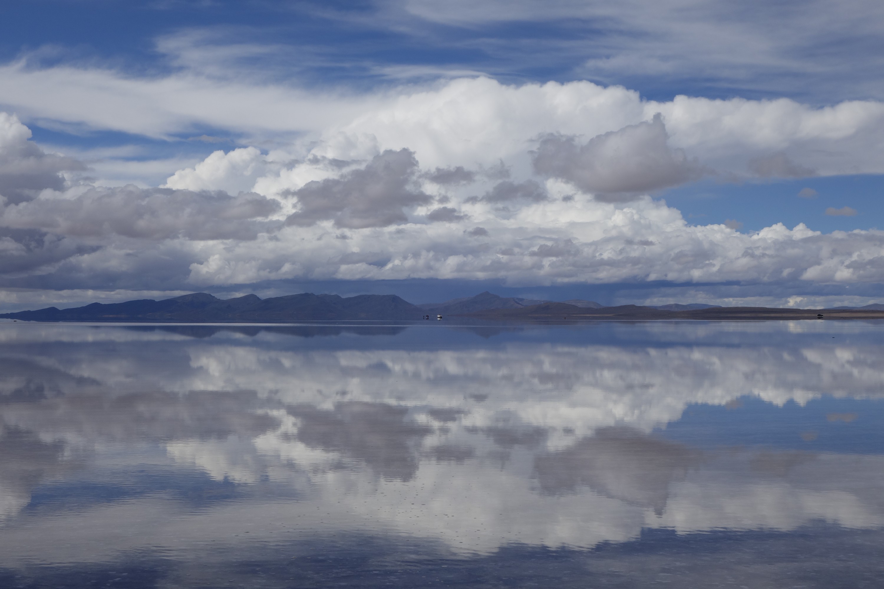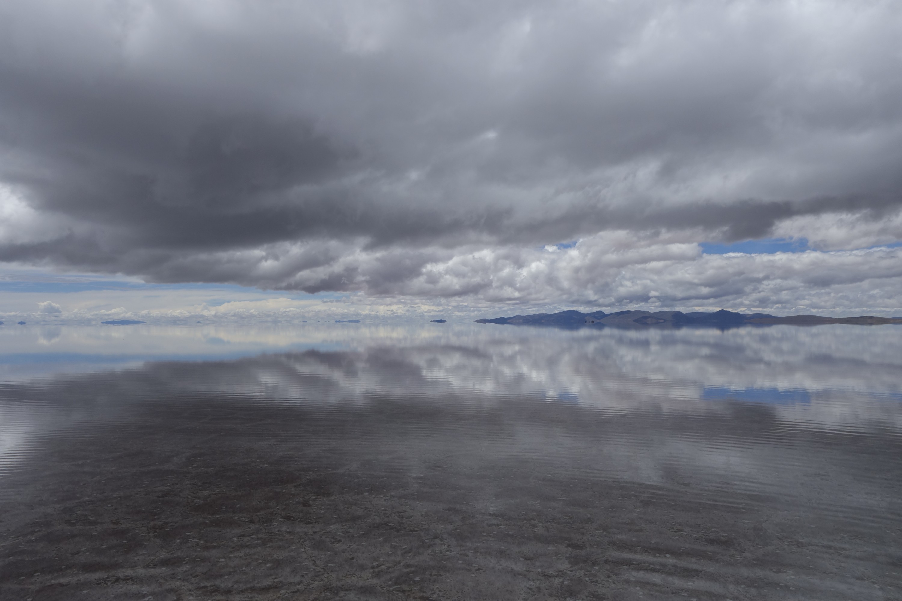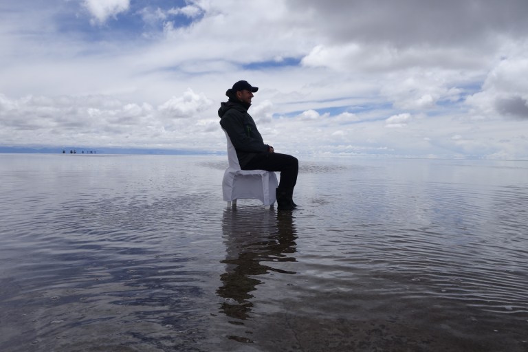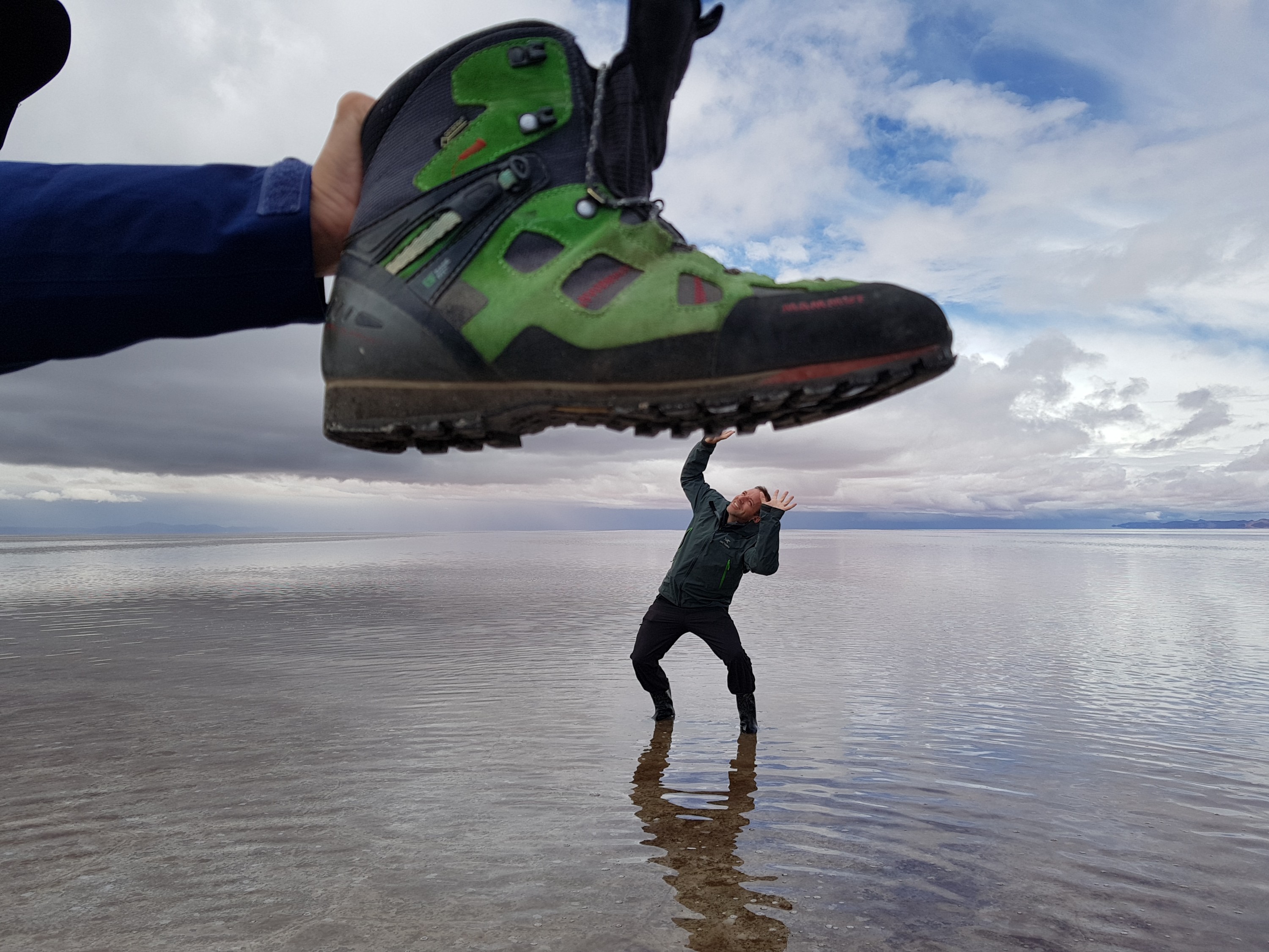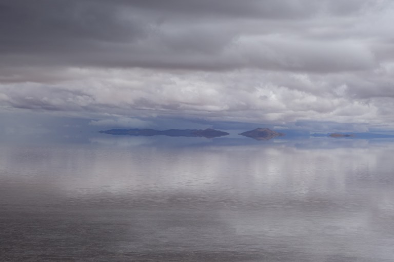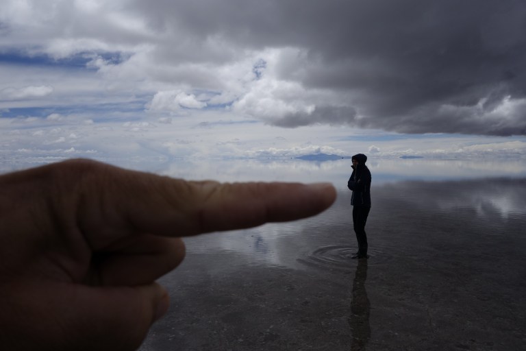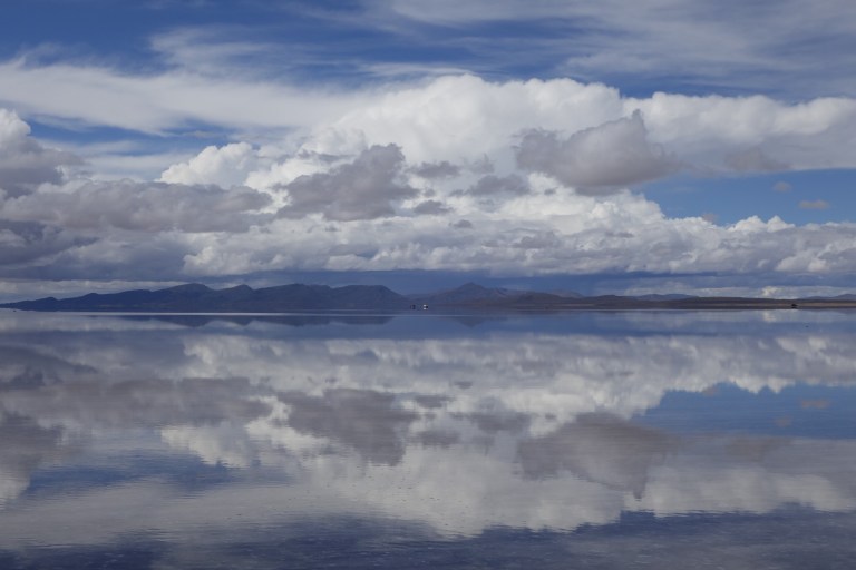 We get back in the car an Chavier drives on into the lake on the salt flats. They all do.