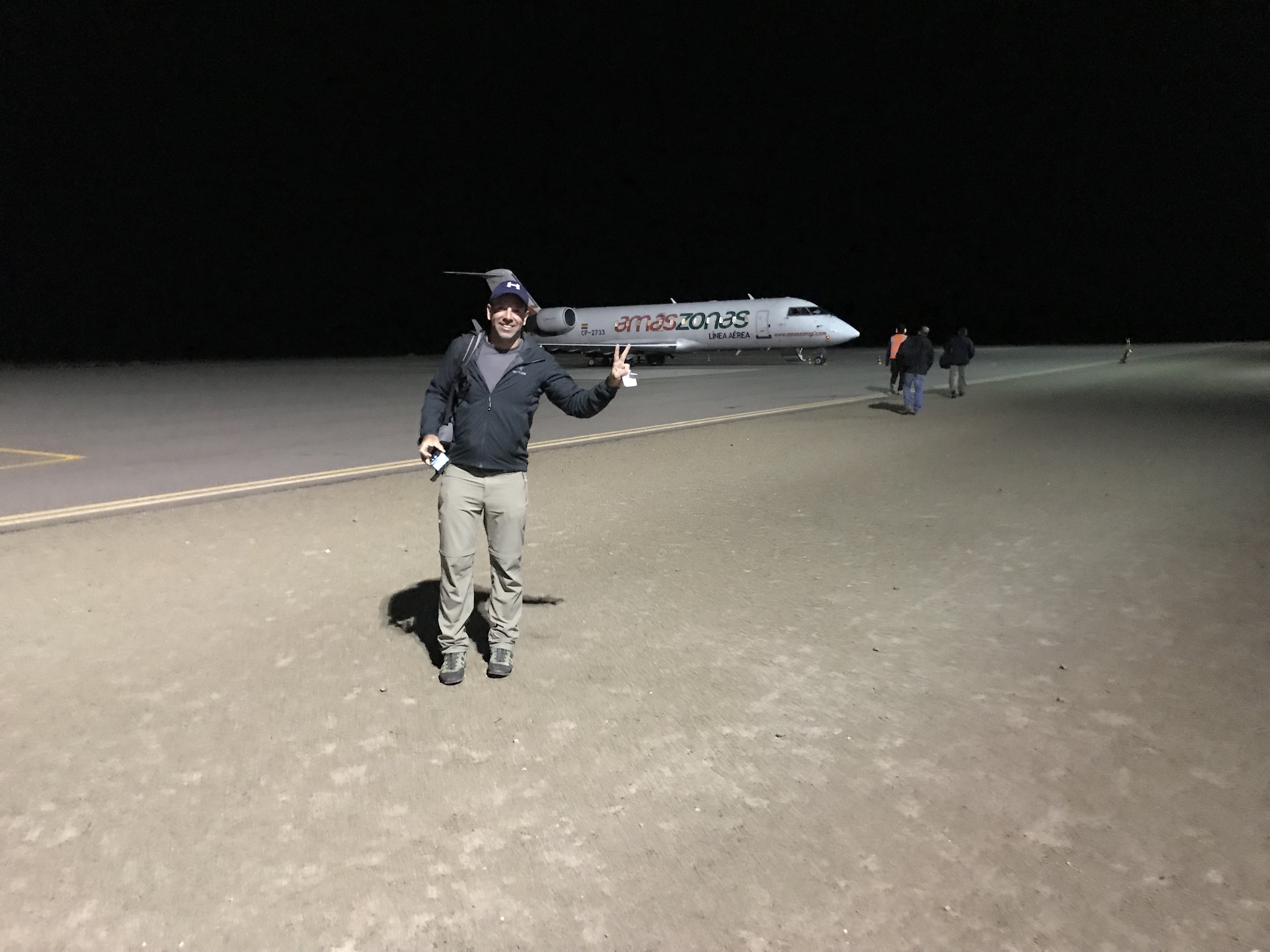 FLIGHT 11: Amaszonas Z80309 from Uyuni (UYU) 20:40 to La Paz (LPB) 21:25; duration 1h35; no miles; Old semi-new Lufthansa Bombardier jet; same decoration I used to fly VIE-CGN-VIE in 1999/2000.